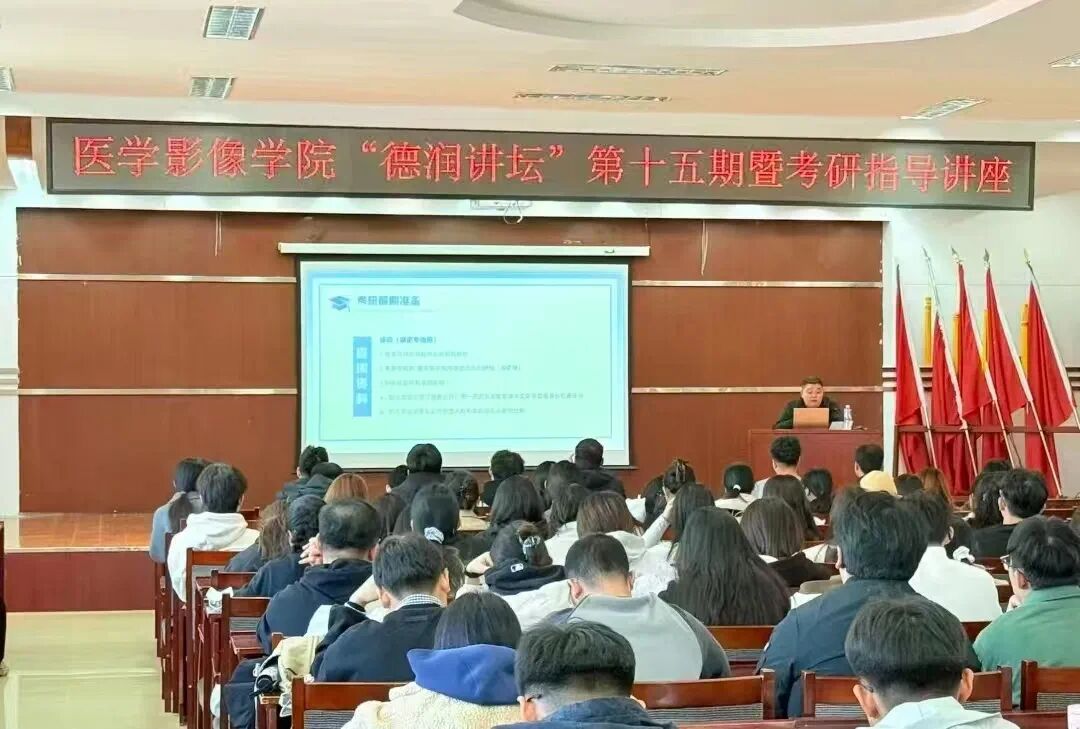 为精准破解同学们考研备考困惑,明晰升学方向,科学规划备考路径,在2026届毕业生硕士研究生即将网络报名之际,2025年10月10日,医学影像学院在基础楼六楼多功能厅成功举办第十五期“德润讲坛”暨考研指导讲座。