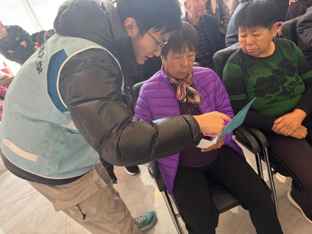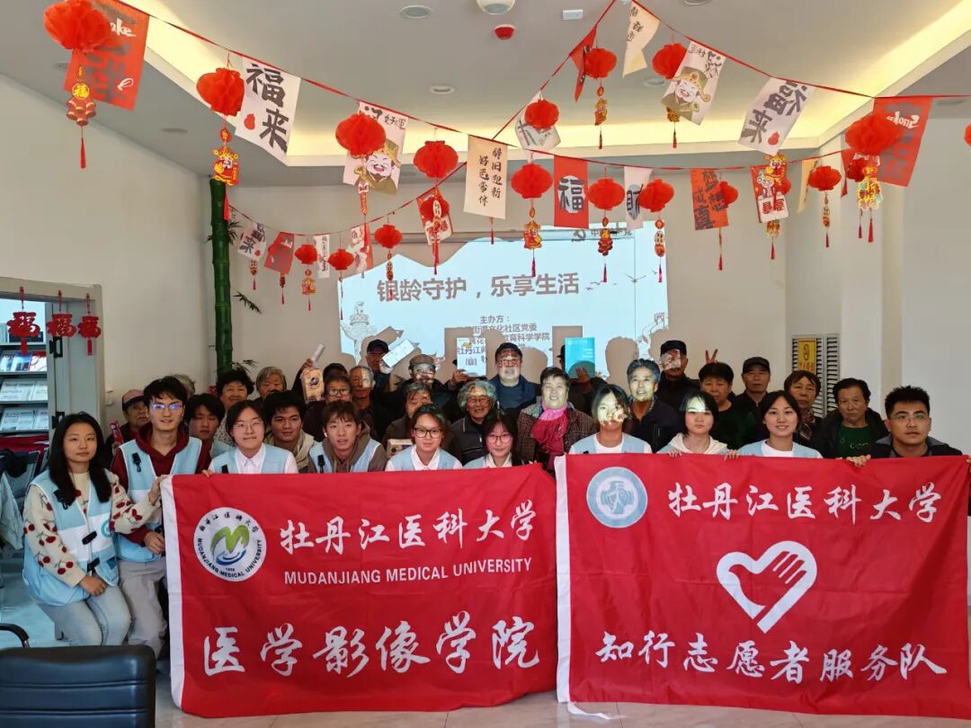 为积极响应“健康中国” 与 “积极老龄化” 国家战略,充分发挥“五老”亲历者、见证者、实践者的优势,向广大青年学生讲好新时代以中国式现代化全面推进强国建设、民族复兴伟业的故事,切实提升社区老年群体法治观念、防骗能力与健康素养,丰富其精神文化生活,10月21日下午,牡丹江医科大学医学影像学院联合牡丹江师范学院教育科学学院、黄花街道文化社区,在社区活动中心共同举办 “银龄守护・乐享生活” 敬老活动,学院学生会志愿者全程积极参与。