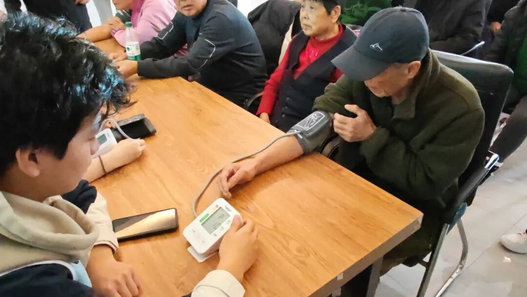 文娱互动与贴心服务环节中,志愿者们认真倾听社区“五老”讲述过去的工作经历,那些伴随时代变迁的奋斗故事、坚守初心的动人瞬间,让青年学子深受触动。老人们用亲身经历诠释责任担当,向青年传递爱国情怀与奋斗精神,充分发挥了“五老”育人作用。随后,志愿者们与老人共同合唱《在希望的田野上》,搭配趣味小游戏,让现场笑声不断;义诊环节中,志愿者耐心为老人测量血压、血糖,详细询问身体状况并记录数据,针对异常指标给出初步健康提示。对行动不便的老人,志愿者全程搀扶引导,用细节传递温暖。
