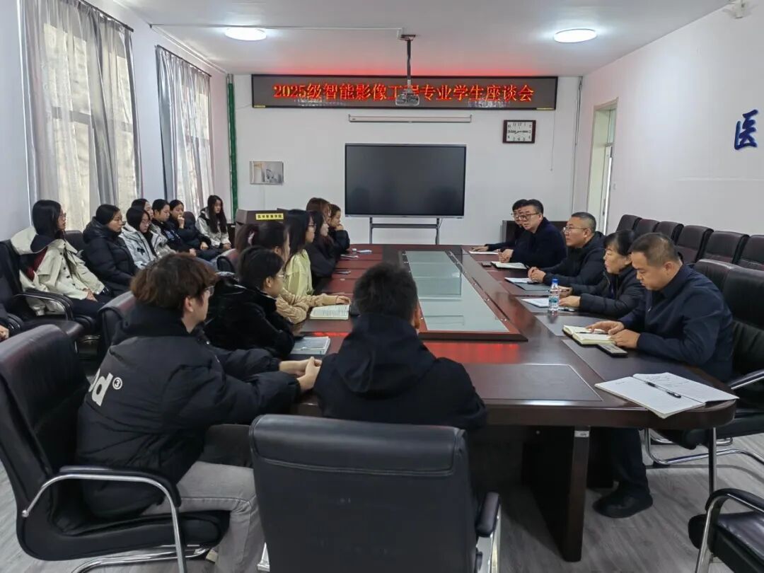 为帮助 2025 级智能影像工程专业新生快速了解专业概况、明确学习方向与职业规划,11月13日上午,医学影像学院召开2025级智能影像工程专业学生座谈会。本次座谈会由医学影像学院院长于广浩主持,外语教研部主任许丹凌,药学院院长关会林,教师发展与教学评估中心副主任刘俊峰列席指导,医学影像学院党委副书记宋海南、学院教务科工作人员参会。
