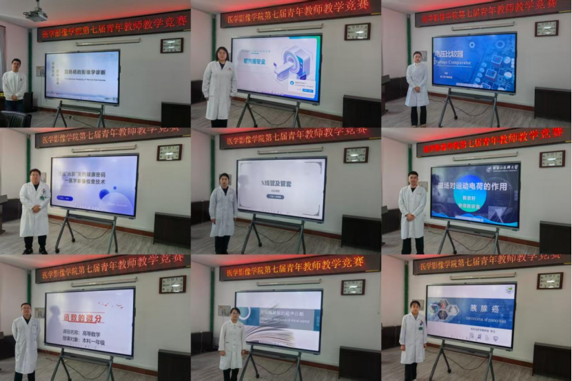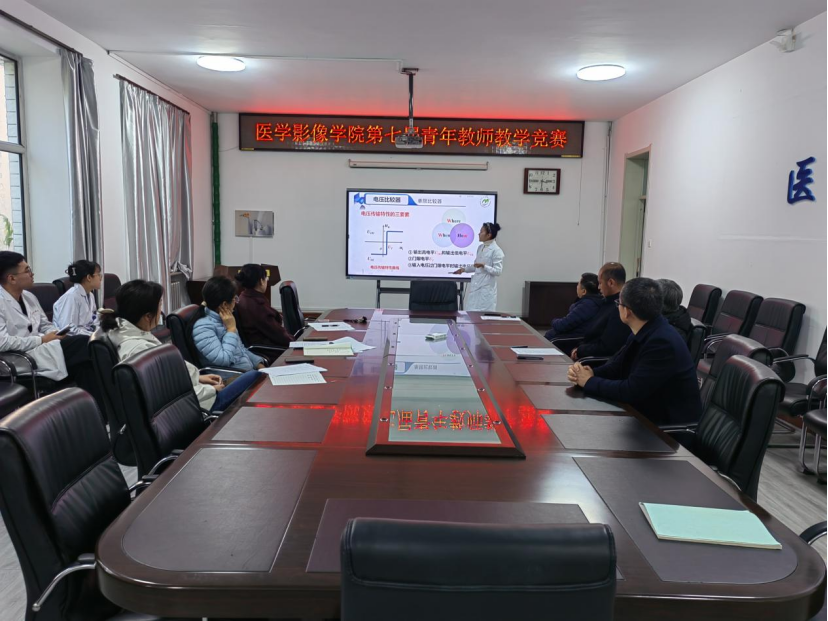2025年10月28日下午,医学影像学院在三楼会议室进行了第七届青年教师教学竞赛。医学影像学院党委书记徐永良、院长于广浩、虚拟仿真实验室主任韩雪山,数学教研室负责人杨云芳、教师陈晶,物理教研室负责人高杨,放射治疗学教研室负责人崔虎军作为评委出席了本次活动。