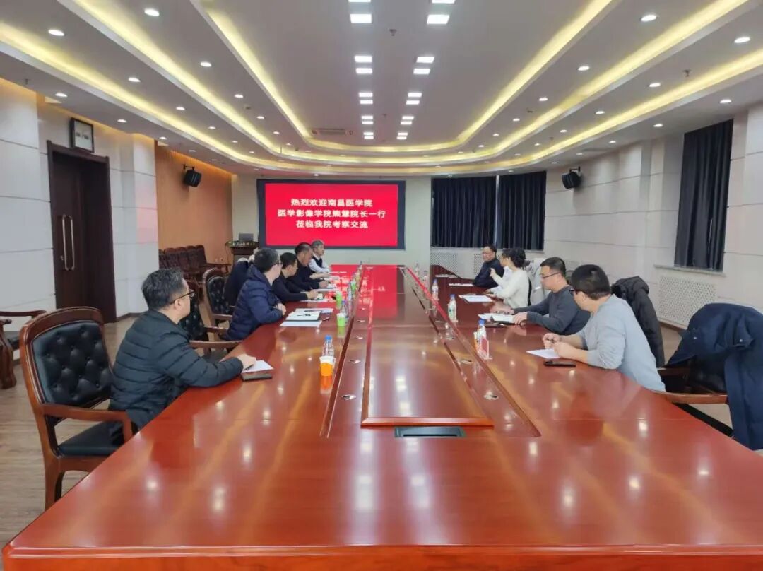 12月2日下午,南昌医学院医学影像学院院长熊慧、发展规划处副处长潘琦虹、第一附属医院影像科主任范兵、影像科技师长邹华春、第二附属医院放疗中心副主任丁生苟一行5人莅临我院考察交流,学校研究生处处长刘兰涛,医学影像学院党委书记徐永良、院长于广浩、副院长朱敏、附属红旗医院医学影像中心主任王汝良、肿瘤内科副主任崔虎军在学校临床技能中心17楼会议室共同会见客人并参加座谈。