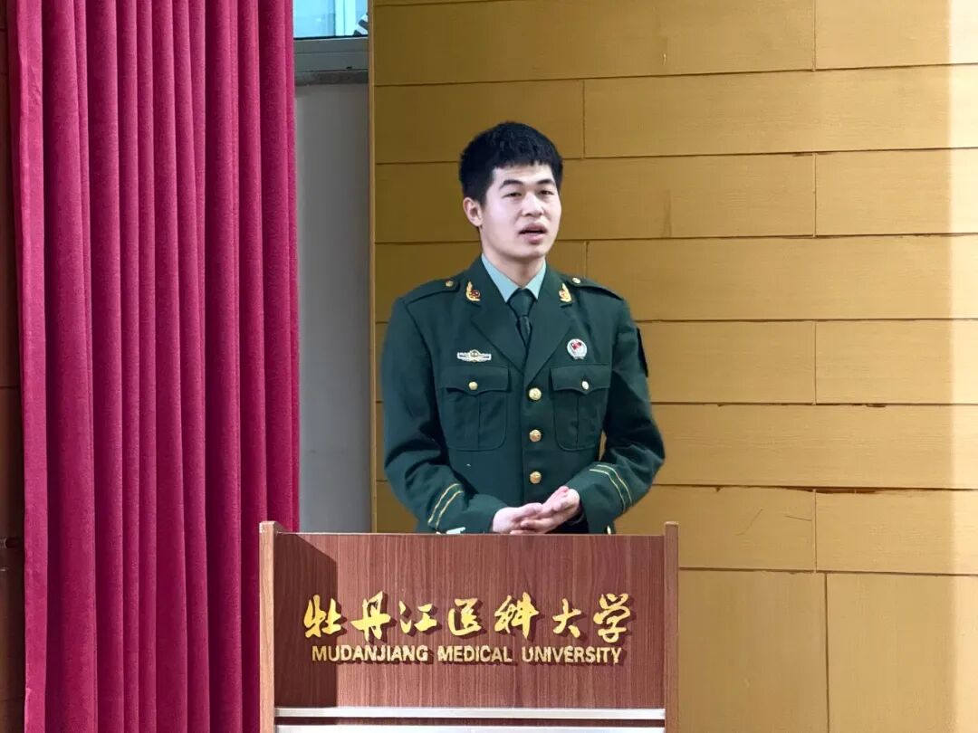 舒洪博同学从征兵意义、条件要求、征兵流程、政策支持四个维度,向学弟学妹们分享了自己的体验与收获。他首先强调,大学生是未来部队建设的主力军,是实现强军目标的重要力量;随后,详细解读了年龄、学历、身体素质、政治立场等核心要求,并特别说明医学影像专业学生在部队技术岗位上的适配优势;此外,他还清晰梳理了从网上报名、初审、体检、政审到役前训练的完整应征流程,帮助同学们全面了解各个环节;针对同学们普遍关注的优惠政策,重点介绍了学费补偿、贷款代偿、退役后就业创业扶持以及优秀士兵保送入学等具体措施。最后,舒洪博向同学们分享了自身在军事训练、专业学习、作风养成与人际拓展等方面的军旅收获,生动展现军营对个人成长的全面塑造作用,让在场学子深切感受到军旅生涯的独特价值。