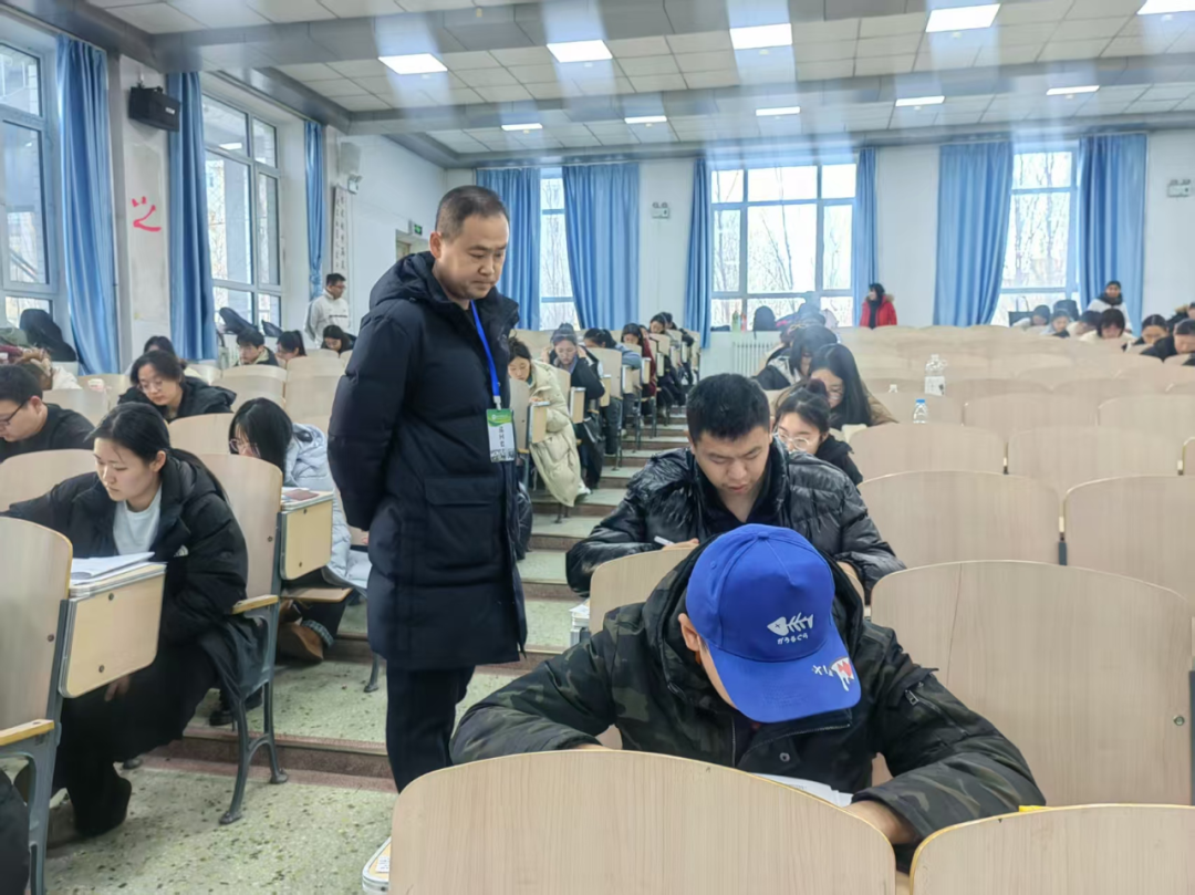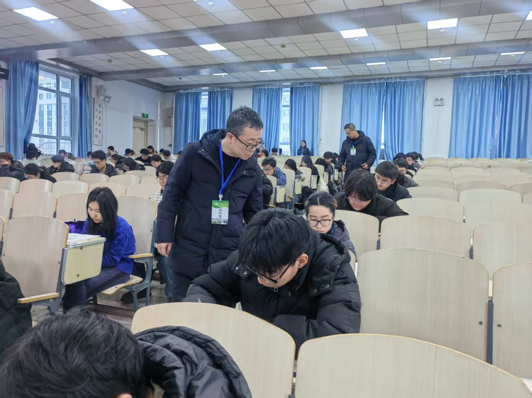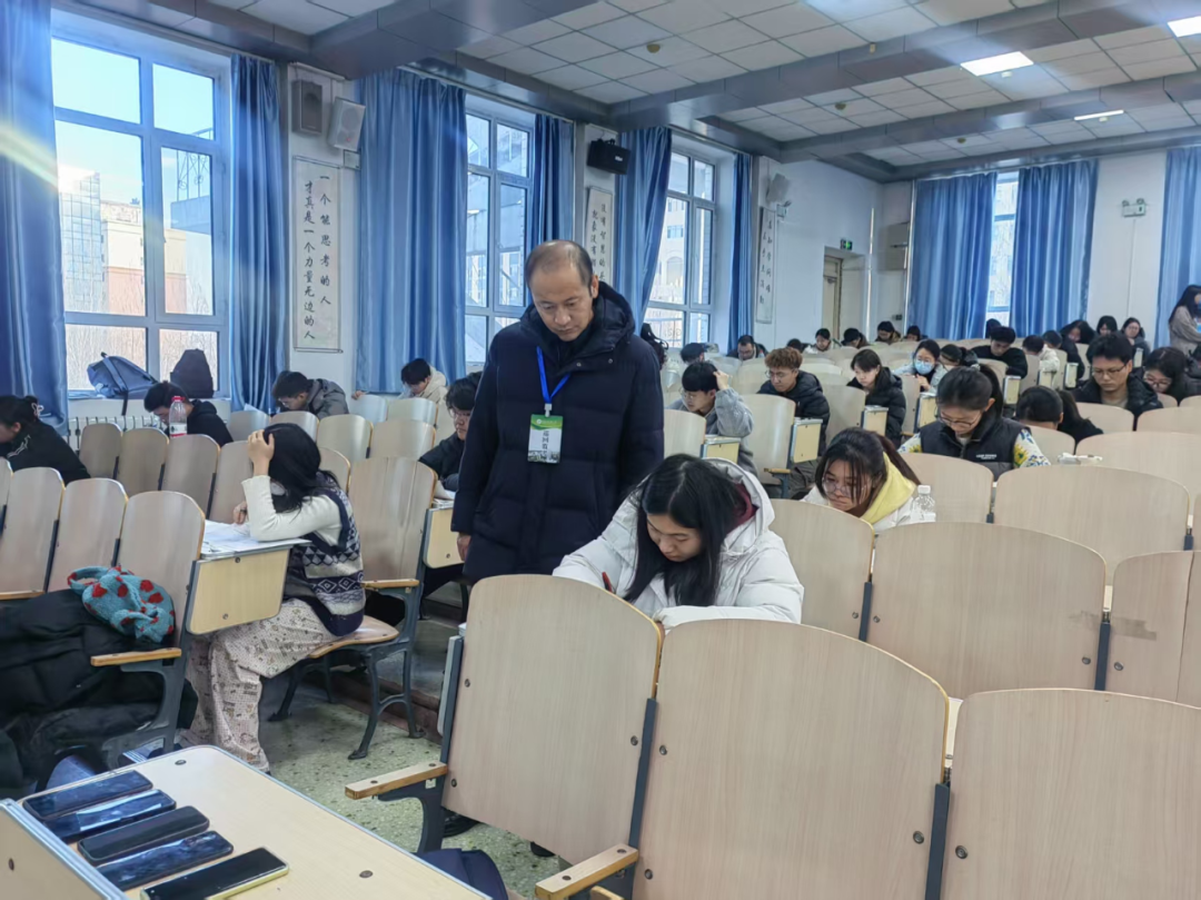 为进一步加强考务管理、学生管理,严肃考风考纪、优化学风建设,营造公平公正的考试氛围,2026年1月6日,医学影像学院党委书记徐永良、院长于广浩、党委副书记宋海南,副院长朱敏开展期末考试走流程活动,对考风考纪与考务保障工作进行现场督查与指导。