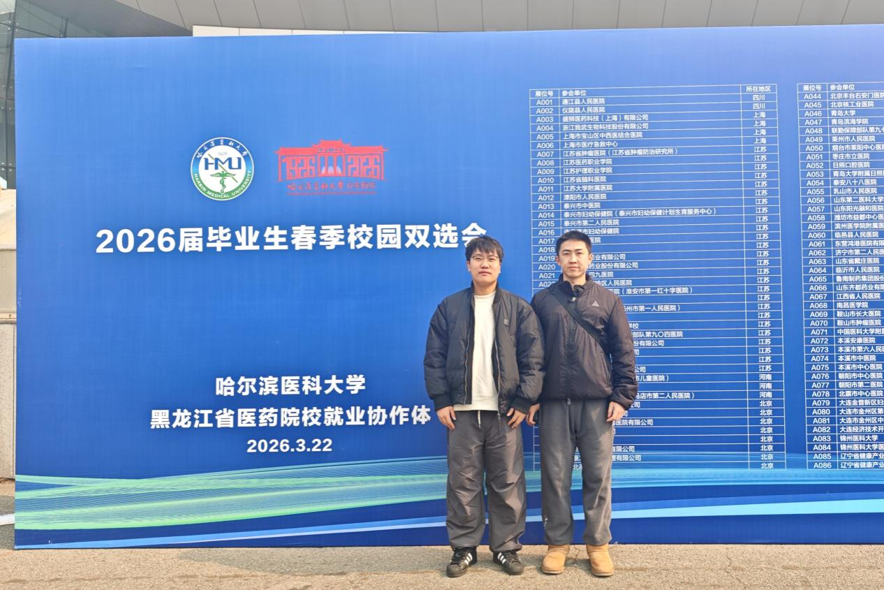 为深入贯彻落实国家关于促进高校毕业生就业工作的决策部署,全力服务健康中国战略人才需求,2026年3月22日,医学影像学院辅导员李英翰、邹佩实老师专程赴哈尔滨医科大学2026届毕业生线下校园双选会,主动对接用人单位,为学院毕业生搭建就业桥梁。