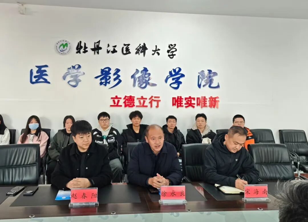 为进一步拓宽毕业生就业渠道,推动毕业生实现更充分、更高质量就业,2026年3月19日,医学影像学院特邀富锦市中心医院走进校园,举办就业合作洽谈暨专场招聘会。学院党委书记徐永良、党委副书记宋海南、实习就业科科长赵春阳,辅导员李英翰、邹佩实及学院部分毕业生参加本次活动。