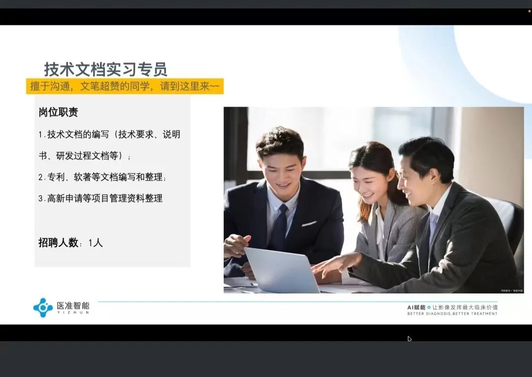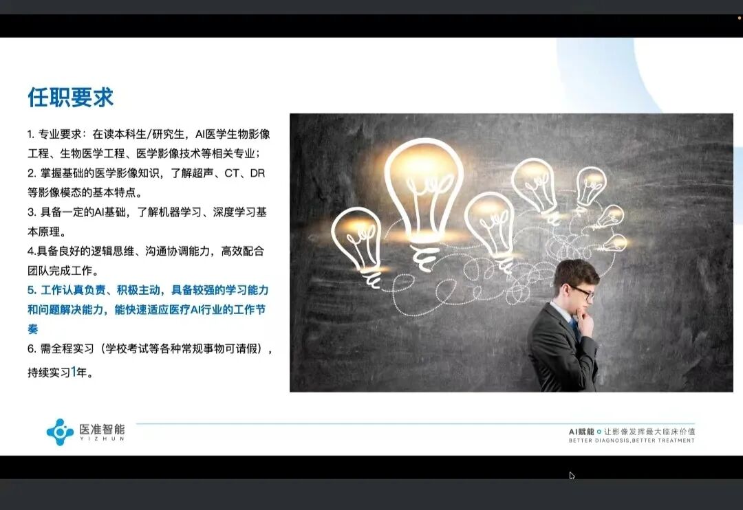 此次实习就业专题线上宣讲会,搭建了学校与优质企业的对接桥梁,既让学生深入了解人工智能医学影像行业发展前景与岗位需求,也为学生提供了高质量实习实践机会。下一步,学院将持续深化校企合作,为学生实习就业保驾护航。
