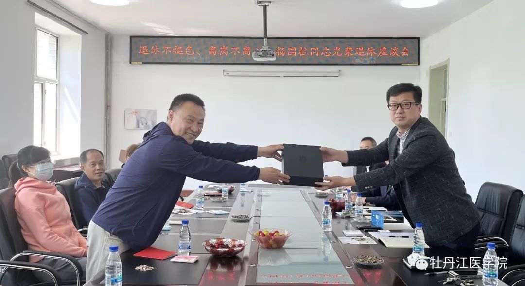 6月12日,医学影像学院为杨国柱同志举行了光荣退休座谈会。副院长于广浩这样评价他:“作为一名老党员,无论是学院党委的工作部署、还是教工党支部的活动安排,杨老师都会积极响应、踊跃参加,起到很好的表率示范作用。既有前辈师者的风范、又有同辈老大哥的担当,为我们树立了良好的榜样。组织生活会上火辣的点评、党员大会上中肯的建议、主题党日活动中合理的倡导……无不体现一名共产党员的初心使命与担当作为。”细微之处见风范,毫厘之优定乾坤。“有一些易损坏设备,像万用表经常坏,外送维修时间相对较长,偶尔上课就不够用,时间长了就会影响教学效果,运行了一段时间后,负面影响很大,杨老师认为不能一直这样继续下去,他就找来说明书,电路图,一点一点的琢磨、摸索,现在俨然成了一个维修专家,随坏随修,不仅给学校节省了维修费用,最重要的是不耽误教学,大家在他的感染下,也都逐渐当起了‘维修专家’。实验室自己维修的设备量,数以百计。这就是我们实验室积极向上的工作氛围。”原实验室主任徐春环述说到。座谈会上杨国柱老师激动的讲到:“非常感谢学院为我专门举行的这次座谈会,回忆18年的点点滴滴,复杂激动的心情溢于言表,学院给了我莫大的关怀,在此我向大家表个态,我退休之后,如果实验室需要我帮忙的地方,我一定会无条件全力支持,我家离学校近,随叫随到,坚决做好传帮带工作。”