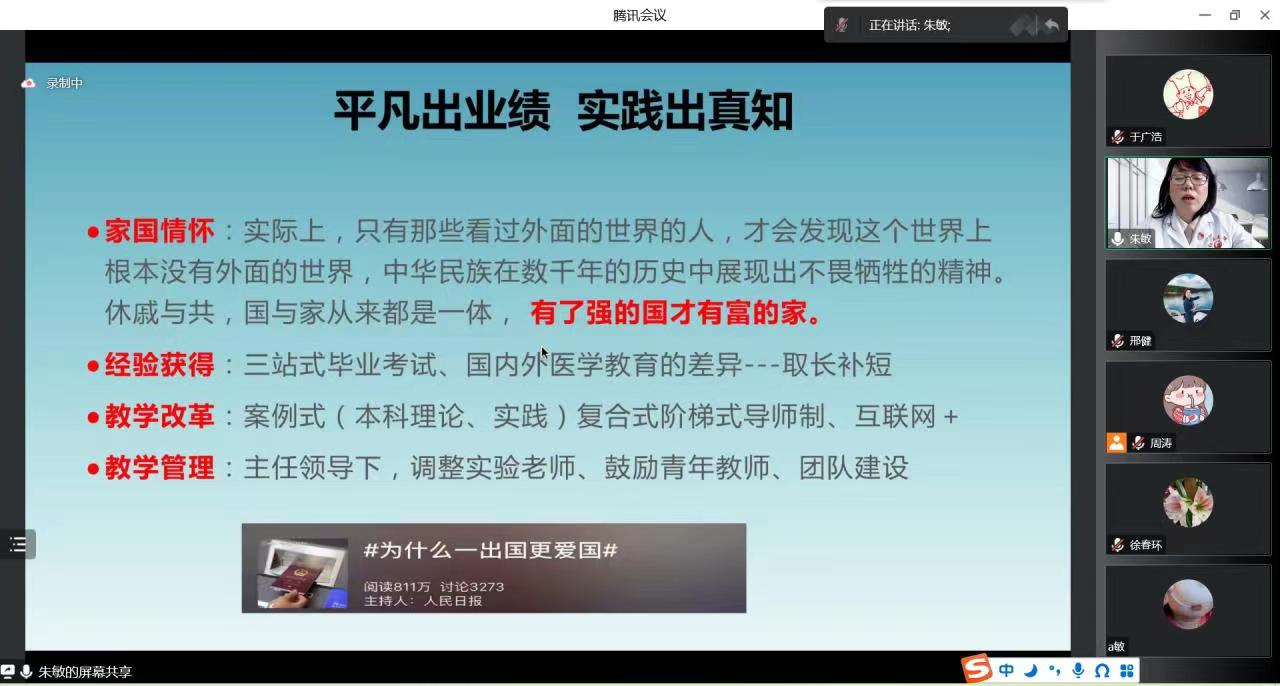 讲座结束后,邢健院长主持座谈会,感谢朱敏老师的精彩讲座,朱敏老师既是一位优秀的临床医学专家,也是一名非常优秀的老师,她的教学设计课堂架构立体、授课内容丰富、思政元素饱满,使教学更具有了深度、广度和温度。大家要多向朱敏老师学习、多多交流探讨。与会教师积极参与互动,就大赛如何准备、申报材料如何填写、参赛教学设计环节如何在日常教学中实践等问题进行了请教。朱敏教授认真的解答每一个问题,毫无保留的分享自己宝贵的大赛材料。