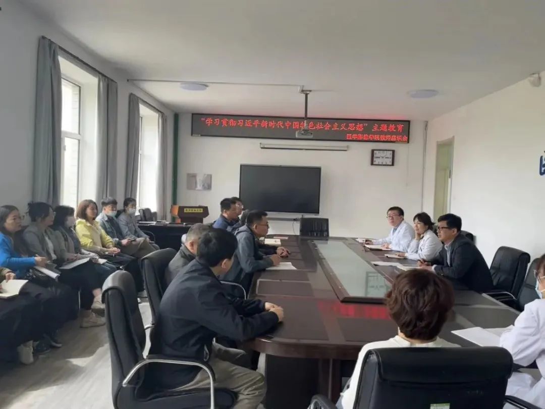 为扎实开展学习贯彻习近平新时代中国特色社会主义思想主题教育,全面落实深化能力作风建设“工作落实年”内涵要求,助力医学影像学院高质量发展,5月5日上午,医学影像学院在三楼会议室召开学习贯彻习近平新时代中国特色社会主义思想主题教育教师座谈会,广泛征求意见建议。医学影像学院院长邢健、副院长于广浩,行政、教学管理人员及教师代表共20人参加座谈,座谈会由医学影像学院党委书记潘艳明主持。