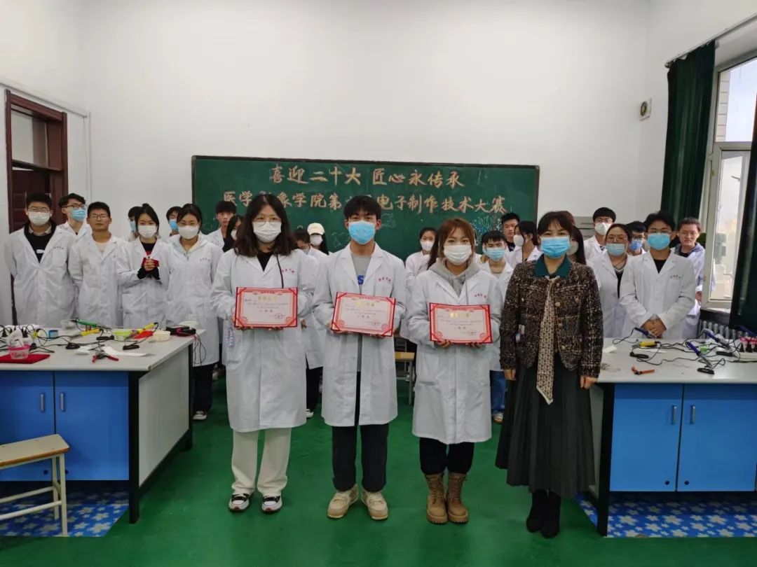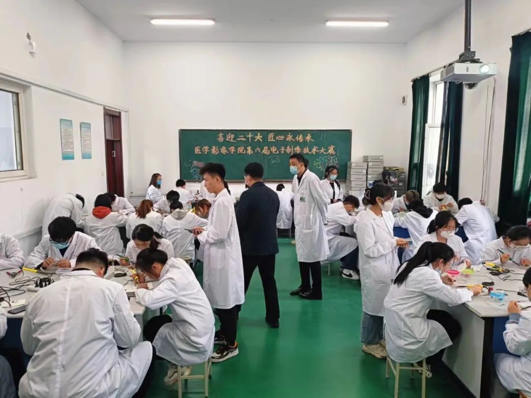 为提升学生创新和实践能力,培养具有“大国工匠”精神的新时代医学工程技术人才,喜迎党的二十大胜利召开。2022年10月13日,医学影像学院在电子电工实验室举办了“喜迎二十大 匠心永传承”第六届电子制作技能比赛。医学影像学院领导班子成员出席本次活动,2021级医学影像技术专业全体学生参加比赛。