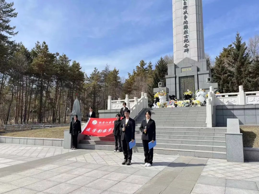 薪薪之火永不熄灭,英雄光辉永不沉眠。为传承革命遗志,发扬革命传统,缅怀革命先烈丰功伟绩,引导广大青年铭记中华民族艰苦卓绝的奋斗历程,大力弘扬爱国主义精神,医学影像学院于2024年4月2日前往牡丹江市北山公园革命烈士纪念广场开展“鲜花祭英烈,清明祭英魂”主题北山祭扫活动。