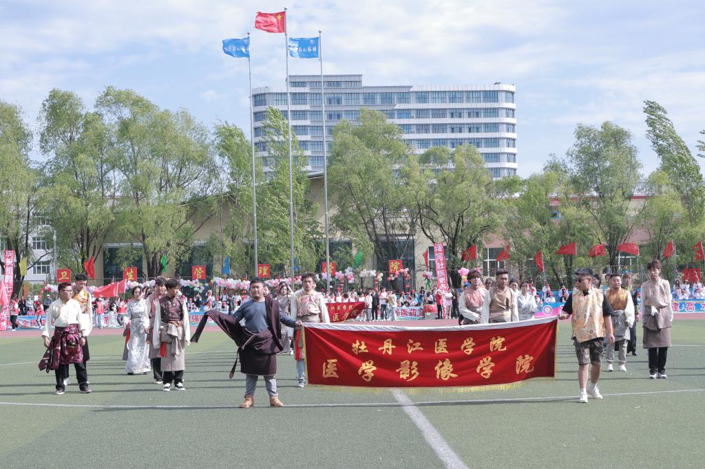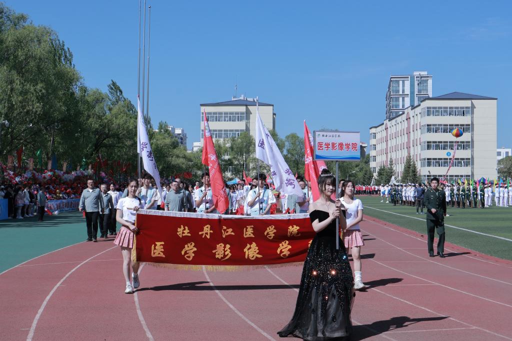一抹暖阳,杏花灿烂,正值春夏之交,牡丹江医学院第三十九届运动会于5月21日隆重举行,影像学子齐上阵,共展青春正当时。开幕仪式上,七色礼花绚丽多彩的升空,信鸽自由翱翔向蓝天。伴随着“新时代,新征程,逐梦前行,新牡医,新影像,扬帆远航”口号声的响起,医学影像学院方阵踏步走来,精神抖擞,响亮的口号,豪迈的步伐,展现了对运动会的期待与祝福。