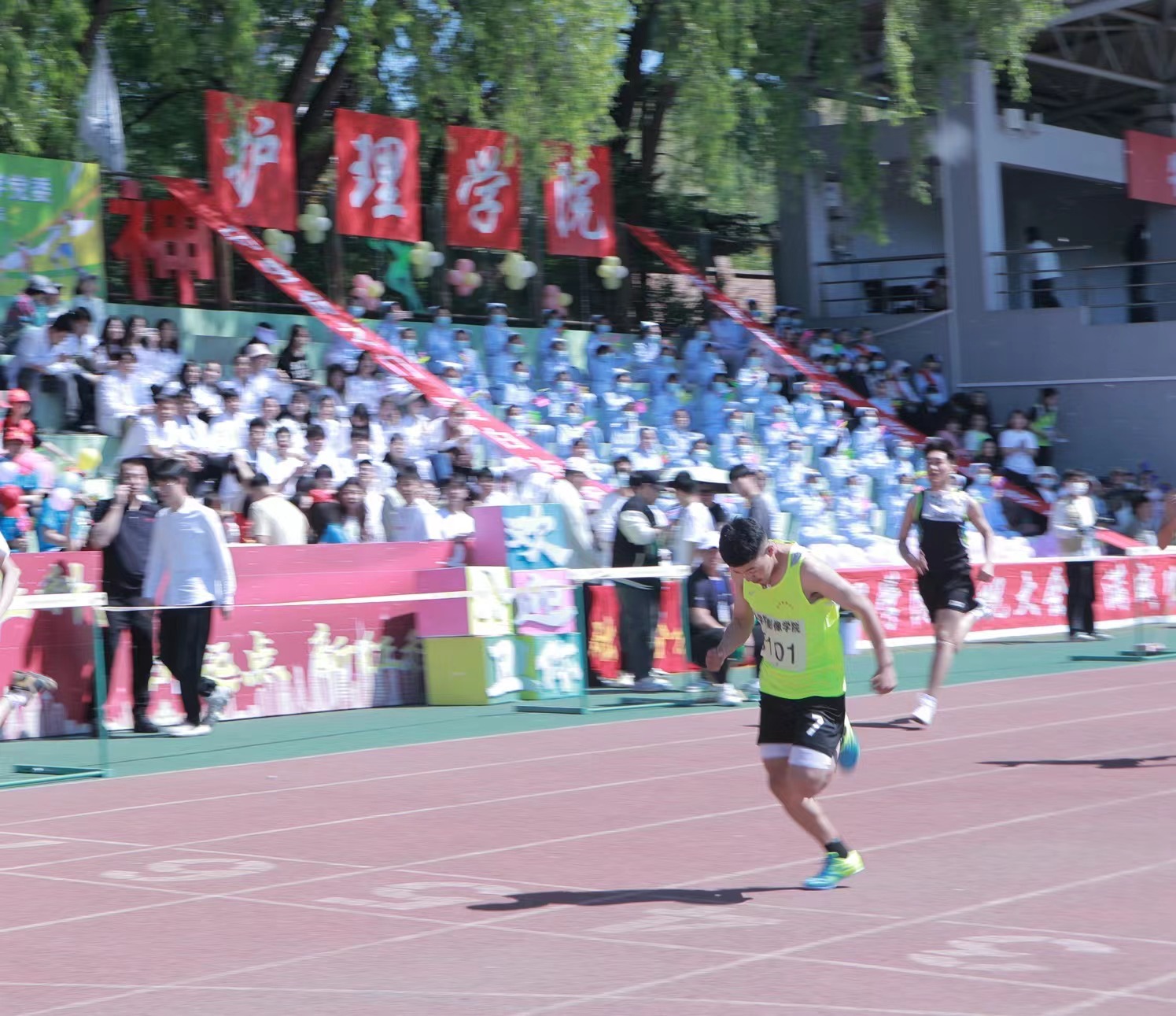 迎着朝阳,我院师生齐上阵,党委书记潘艳明、副院长于广浩来到观众席与同学们交流,副处级辅导员宋海南、团委书记陈盈盈来到幕后区为运动员们分发号码牌,辅导员于曦、赵春阳、陈瑀、彭博伟、李英翰为运动员们击鼓助威。看台的观众身穿白服有序就坐,他们奋力的挥动加油棒,热情满满。不可或缺的工作人员们正为大家默默付出,或是送去加油稿,或是主动收集看台区的垃圾,亦或是为完赛运动员送水,与微风吹起的彩旗飘扬共组成靓丽的风景线。运动场上比拼激烈,他们眼神坚定,身姿矫健,步伐如风,将赛场点燃。运动员们用精彩非凡的表现演绎了自信的姿态,凝结了奋斗的汗水。晴天漫无云,学子展风采,汗水与喜悦交织共融,拼搏与感动同频共振。