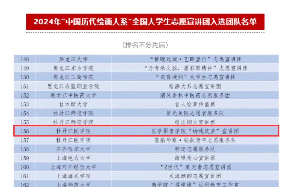 牡丹江医学院医学影像学院的“铸魂筑梦志愿服务队”再次名列其中。