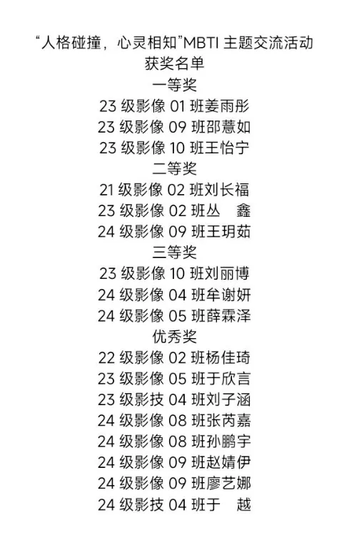 本次“人格碰撞,心灵相知”MBTI主题交流活动的成功举办,不仅增进了同学们之间的交流互动,还为学院打造了一个更加融洽、包容且生机勃勃的学习环境。未来,医学影像学院将继续举办此类活动,帮助同学们在愉快的氛围中探索自我、了解他人,实现共同成长!