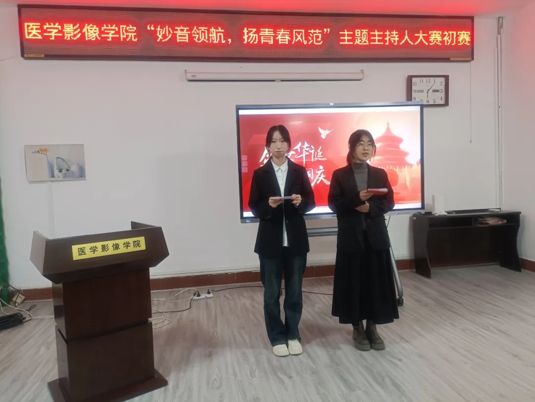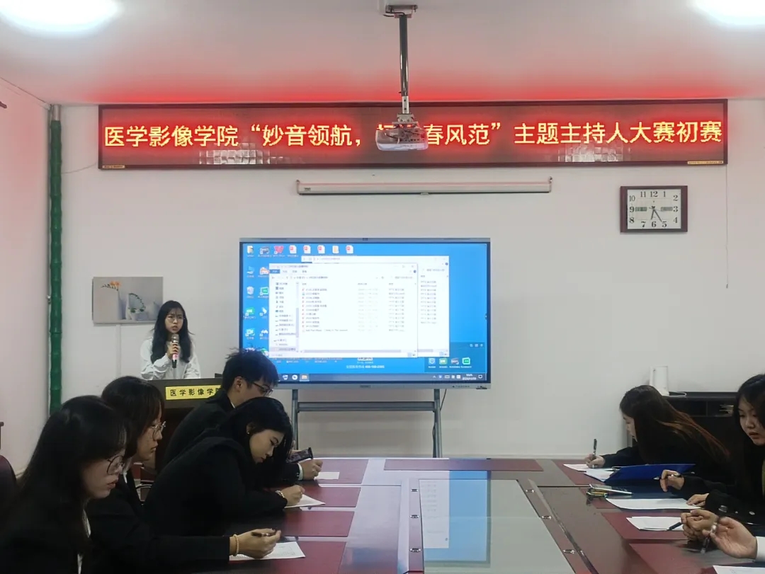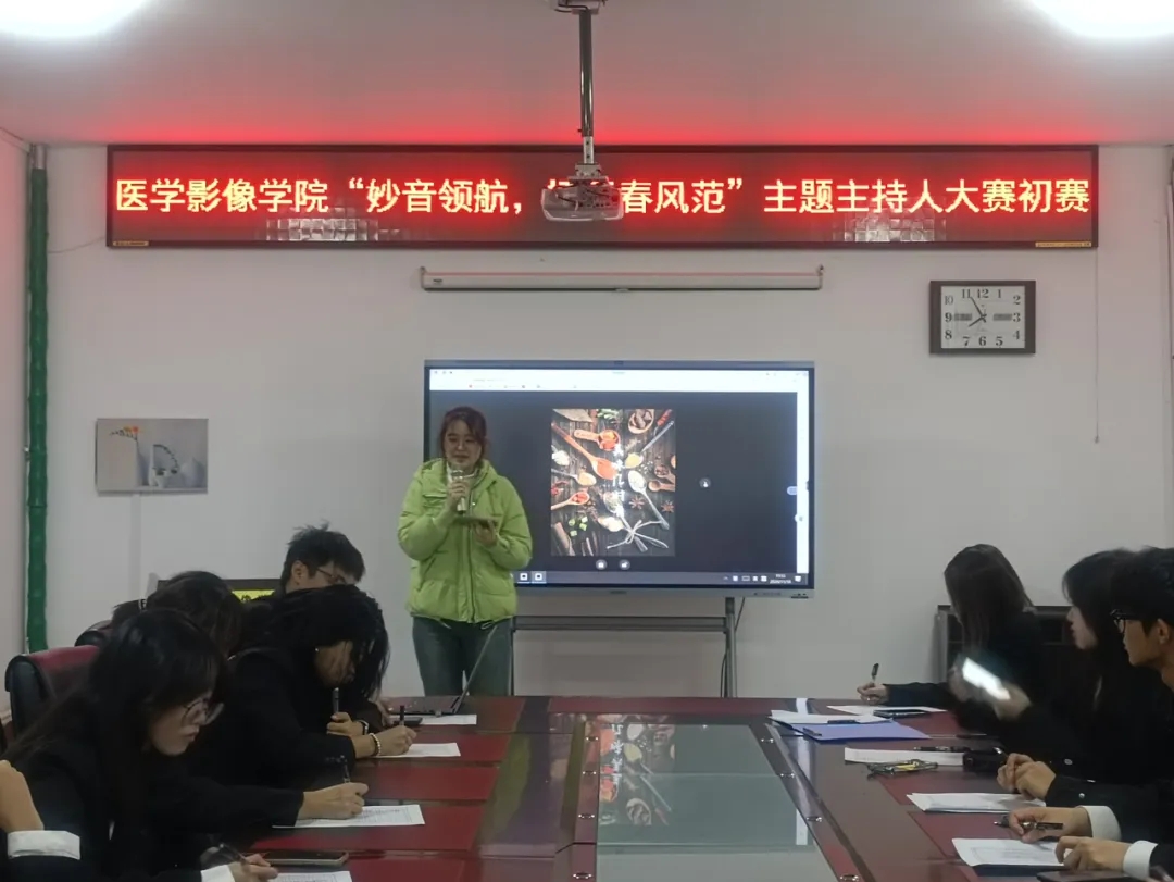 为丰富学生们的课余文化生活,展现当代青年的青春风采,提升学生们的综合表达能力,促进校园文化的发展。2024年11月18日晚18:00,医学影像学院在影像楼3楼会议室举办了“妙音领航,扬青春风范”主题主持人大赛活动初赛。本次大赛旨在挖掘和培养具有潜力的主持新星,为校园文化的繁荣与发展注入新的活力。