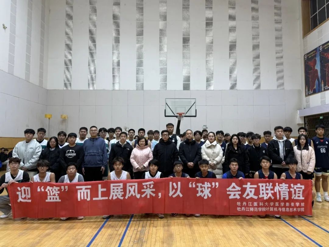 为加强学校之间的体育文化交流,丰富校园文化氛围。2024年11月8日晚,牡丹江医科大学医学影像学院与牡丹江师范学院计算机与信息技术学院在牡丹江医科大学文体馆篮球场共同举办了一场校际篮球友谊赛。牡丹江医科大学医学影像学院党委书记潘艳明、牡丹江师范学院计算机与信息技术学院党委副书记杨洋、牡丹江医科大学医学影像学院副处级辅导员宋海南以及双方学院辅导员出席了本次活动。