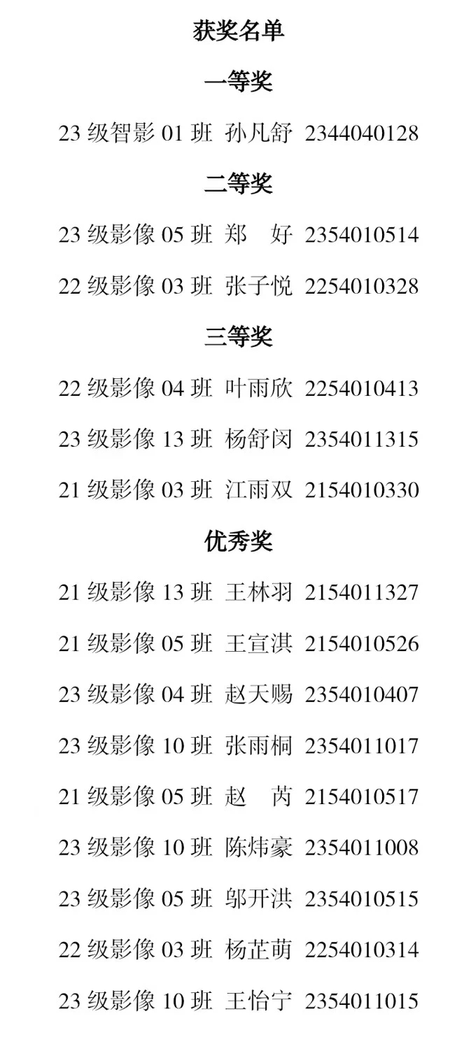 获奖名单如下:
