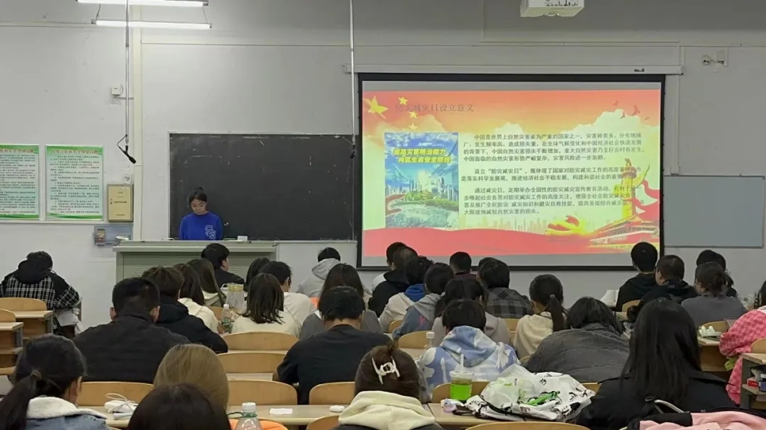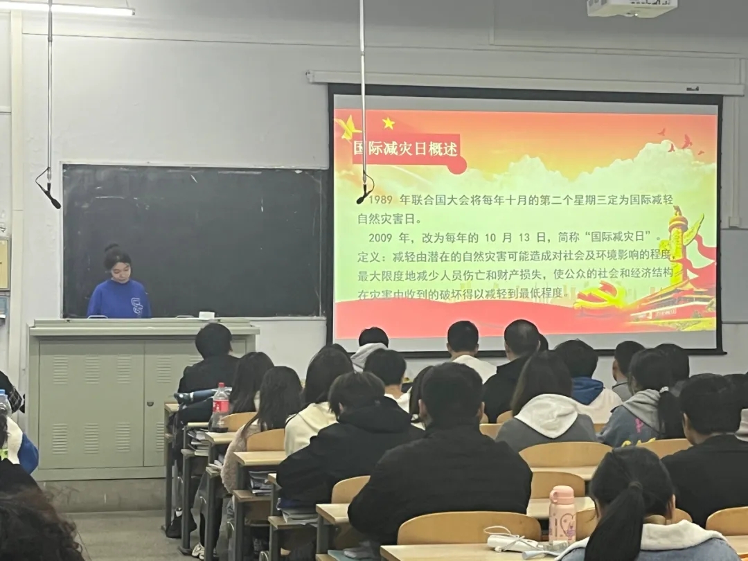 宣讲活动过程中,宣讲员讲解了“发展一方,平安一方”的减灾工作对于保护人类生命财产安全、促进经济社会可持续发展的重要性。通过详实的数据,讲述了近年来极端天气事件频发的现象,详细解析了在地震、海啸等自然灾害中成功应对的典型案例,同时分析了自然灾害对全球经济、社会、环境造成的影响,引起同学们的深刻共鸣。最后在呼吁环节,强调了同学参与对于提升减灾效能的关键作用,并鼓励同学增强防灾减灾意识,学习掌握基本的自救互救技能,积极参与到防灾减灾抗灾的宣传活动当中。