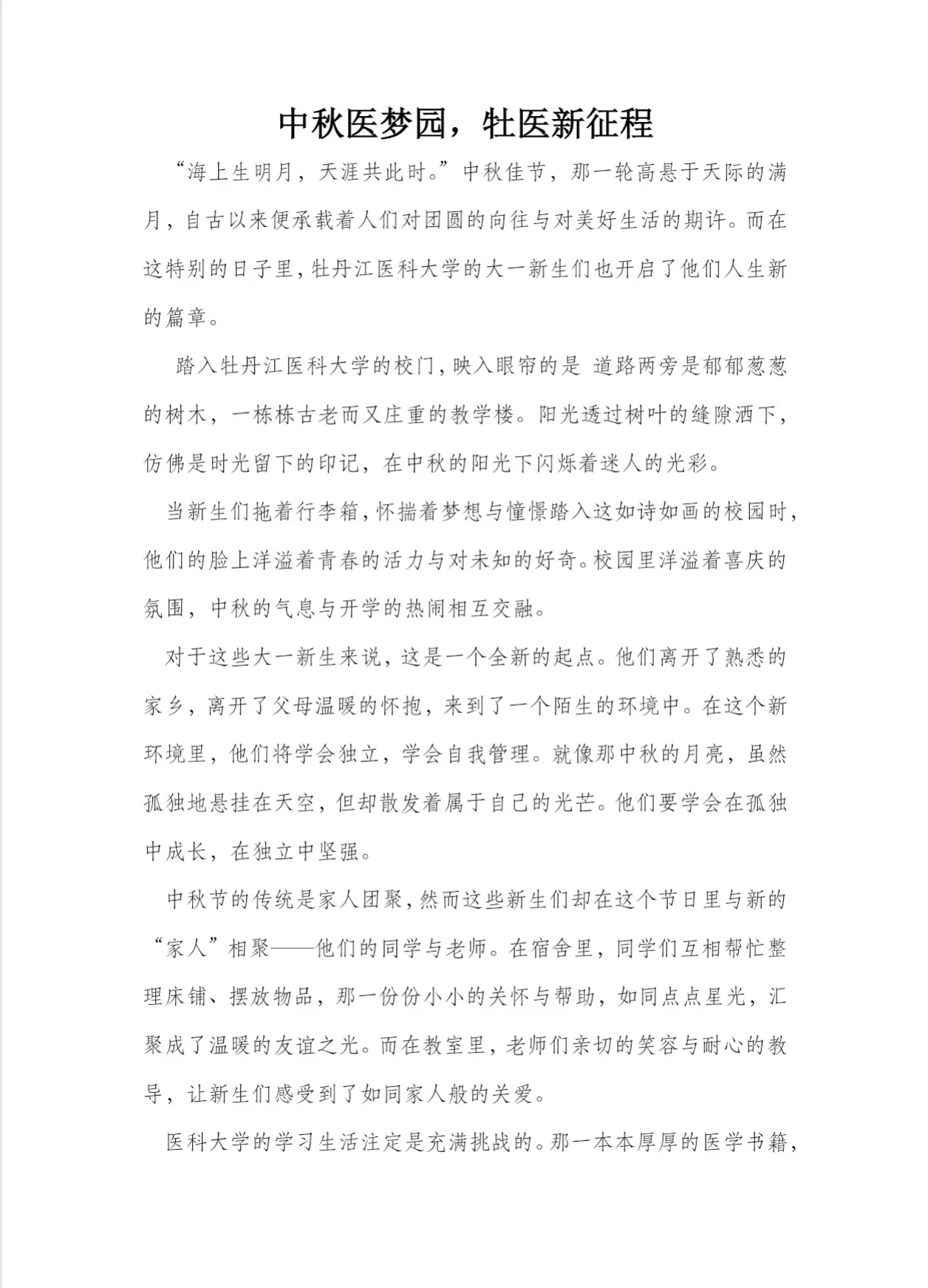 明月寄相思,团圆中秋节。为弘扬优秀传统文化,营造浓情的中秋节日氛围,丰富校园文化生活,传递中秋团圆美好祝愿。2024年9月14日—9月16日,我院举办“牡医送秋爽,丹桂送飘香”主题征文活动。