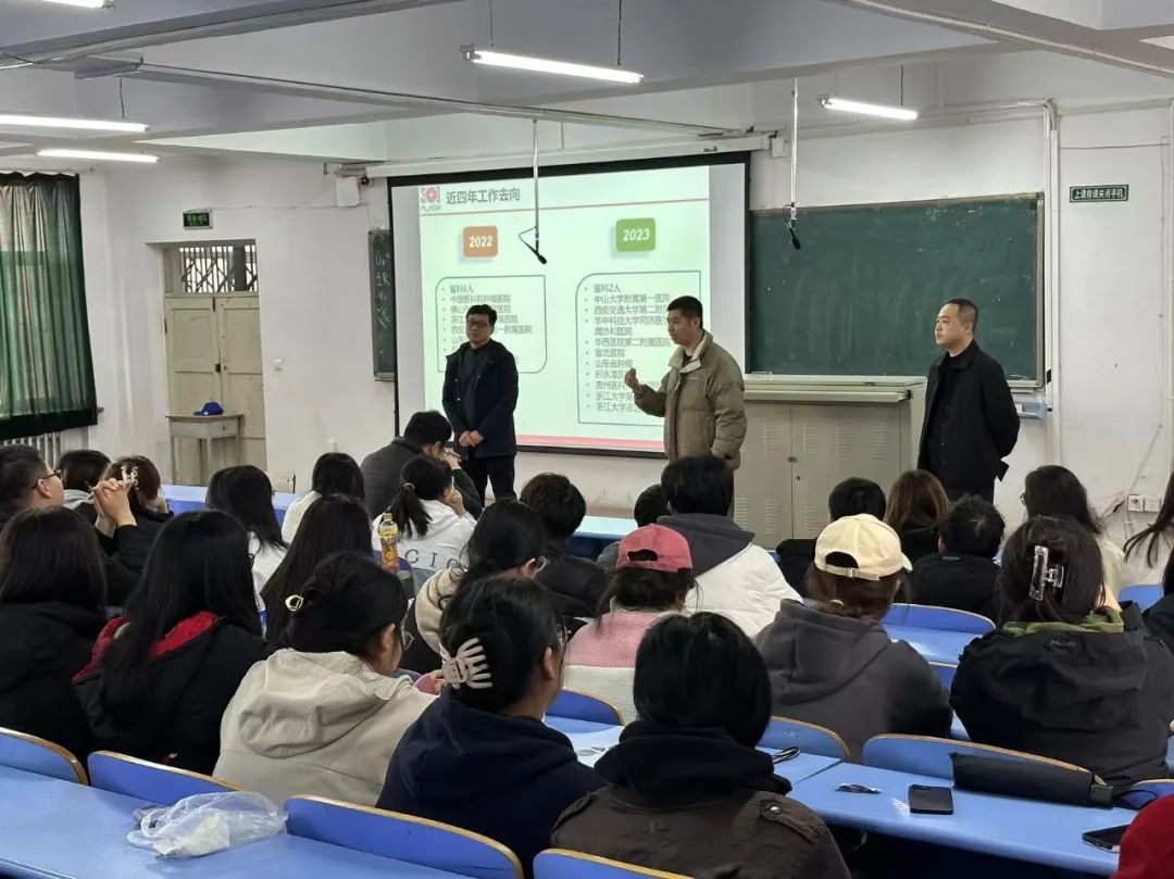 就业是最大的民生工程、民心工程、根基工程,高校毕业生就业则是稳就业的重中之重。为进一步做好我院2024年实习就业工作,2024年3月28日,医学影像学院邀请中国人民解放军总医院第一医学中心放射治疗科戴相昆、崔泽平、吴韶鹃来我院进行实习就业宣讲,参会人员有医学影像学院党委书记潘艳明、副处级辅导员宋海南、实习就业科负责人赵春阳、辅导员李英翰以及相关专业学生。