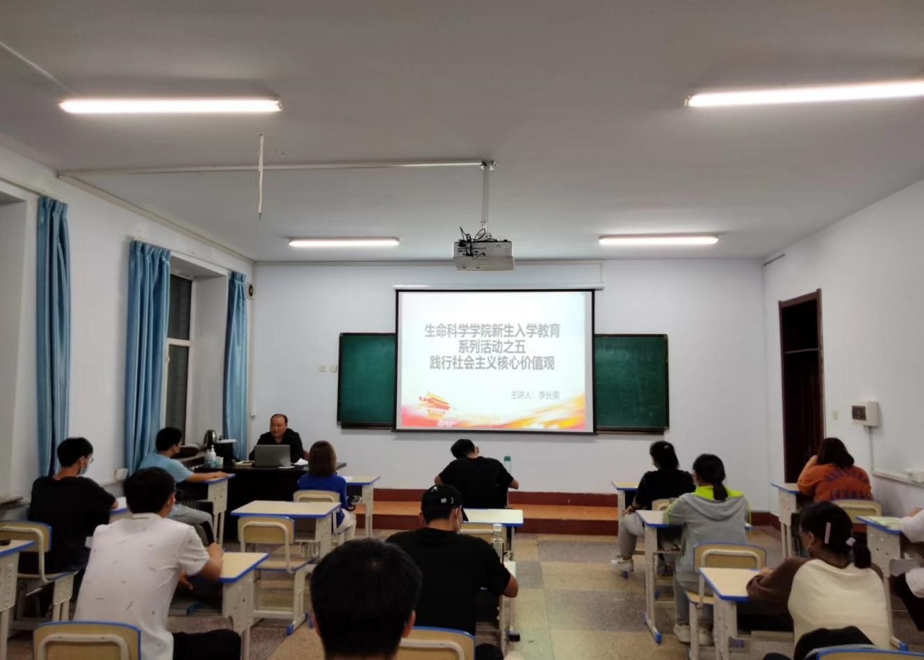为提高新生对社会主义核心价值观的认识,强化爱国爱校意识,推进学生笃学上进,争做优秀的国家建设者,生命科学学院于2022年9月13日在本院教室召开新生社会主义核心价值观教育讲座。学工办副主任付小达老师主持,李长荣副院长主讲,全体新生参加了讲座。