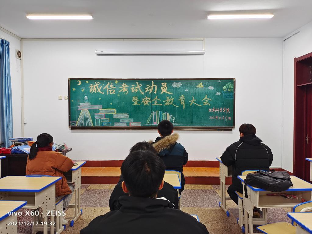 为打造良好的学风、考风氛围,2021年12月18日,生命科学学院组织召开了学生诚信考试动员大会暨安全教育大会。会议由辅导员付小达老师主持,全体学生参加了会议。