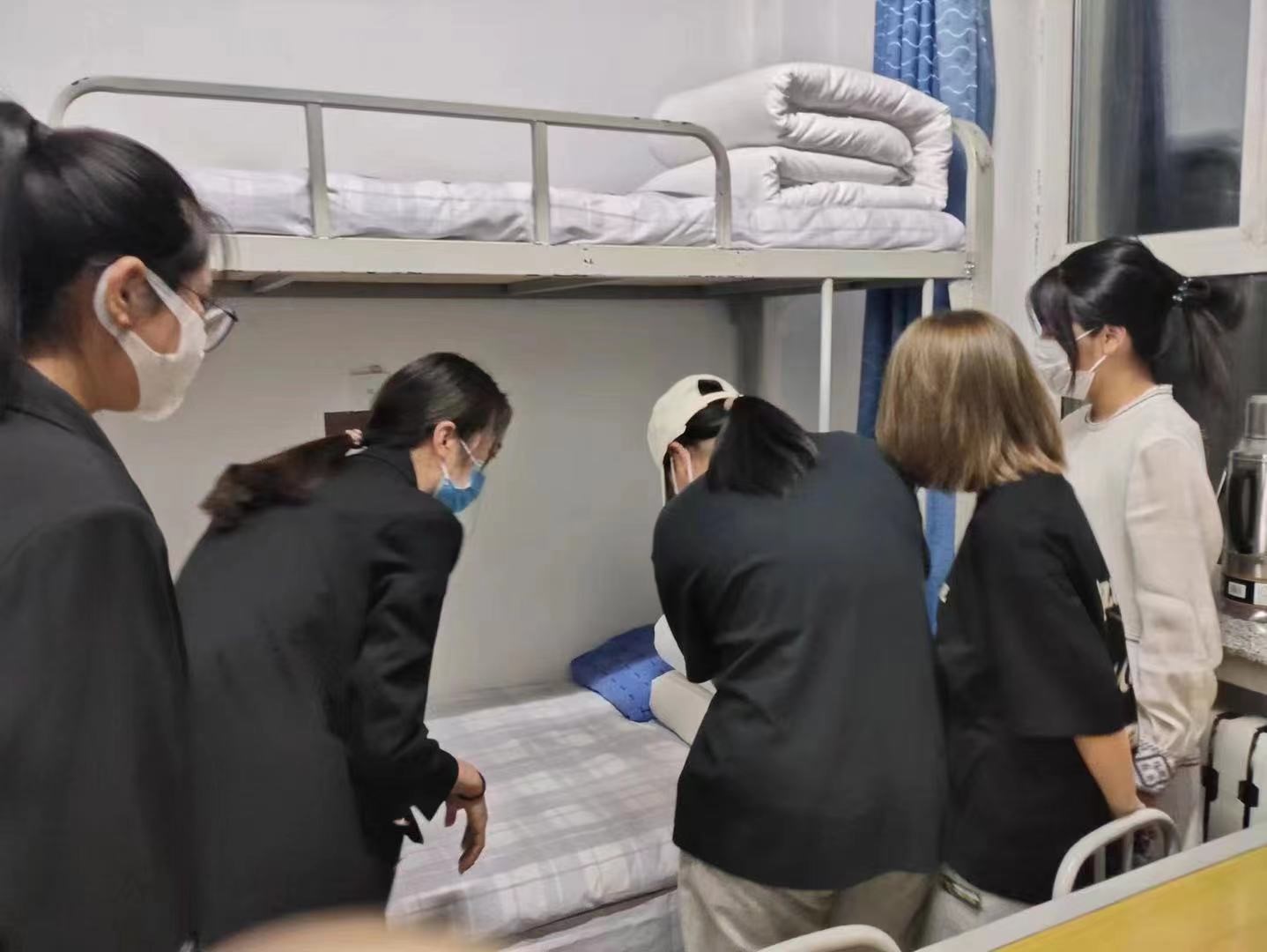 检查指导期间,辅导员付小达老师及有关人员认真检查每一处卫生死角与盲区,并强调了宿舍用电用水安全,饮食安全,人身安全等事项,就如何规范地整理好内务,在内务比赛中获胜进行现场指导。