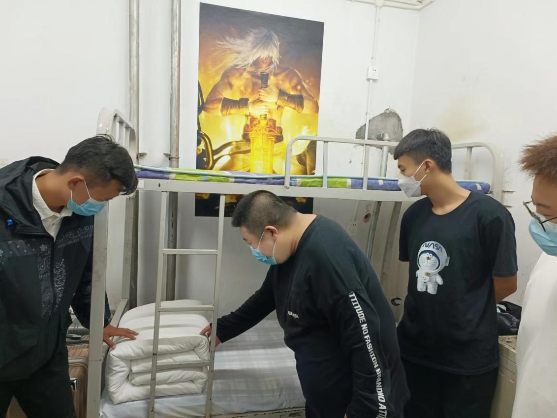 为了让2022级大一新生养成良好的整理内务习惯,切身体会到集体生活的责任与义务,促进学生规范健康地学习生活,2022年9月8日晚,由付小达老师带队,深入生命科学学院2022级新生宿舍进行内务检查,指导同学们如何参加学校军训内务大比武活动。