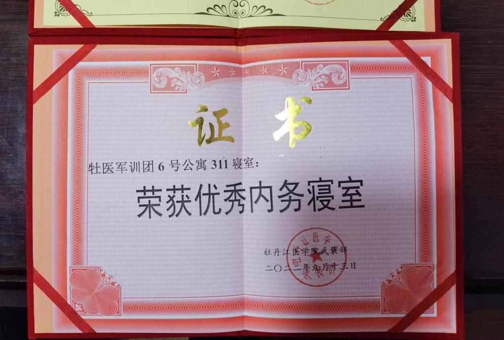 同学们经历了从假期懒散到军训中铁一般的纪律的行为转变,在军训中听指挥,严纪律,克服困难,按时训练,出色地通过了武装部及教官的各种突击检查和检验,以饱满的热情和严谨的态度,完成了军训任。在9月11日学校开展的军训期间学生宿舍内务大比武活动中,我院闫孟雅同学及女生6号公寓311寝室分别获得了“个人优秀内务”和“优秀内务寝室”的荣誉称号。