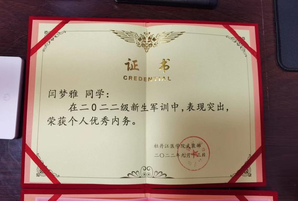荣誉的获得,既是对同学们军训期间自觉而高标准地完成训练任务的肯定,又是对同学们进入正常大学学习生活中能够继续保持良好的、高标准的生活习惯的鞭策。