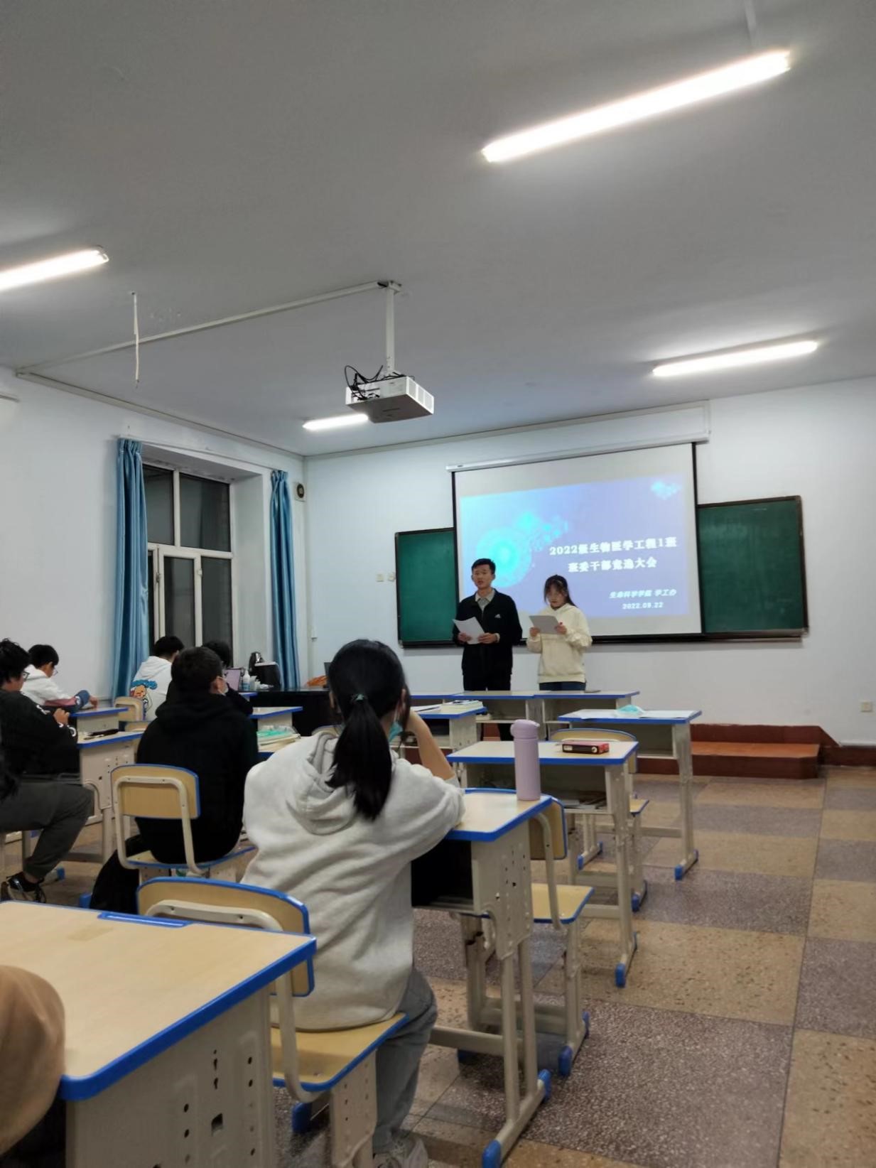 为了更好的提高班级凝聚力,保证各项工作有序开展,2022年9月22日,生命科学学院学公办在影像前楼教室举行2022级新生班级干部竞选大会。辅导员付小达老师到会指导,2022级全体学生参加了竞选大会,会议由2022级学生王英达、马欣茹主持。