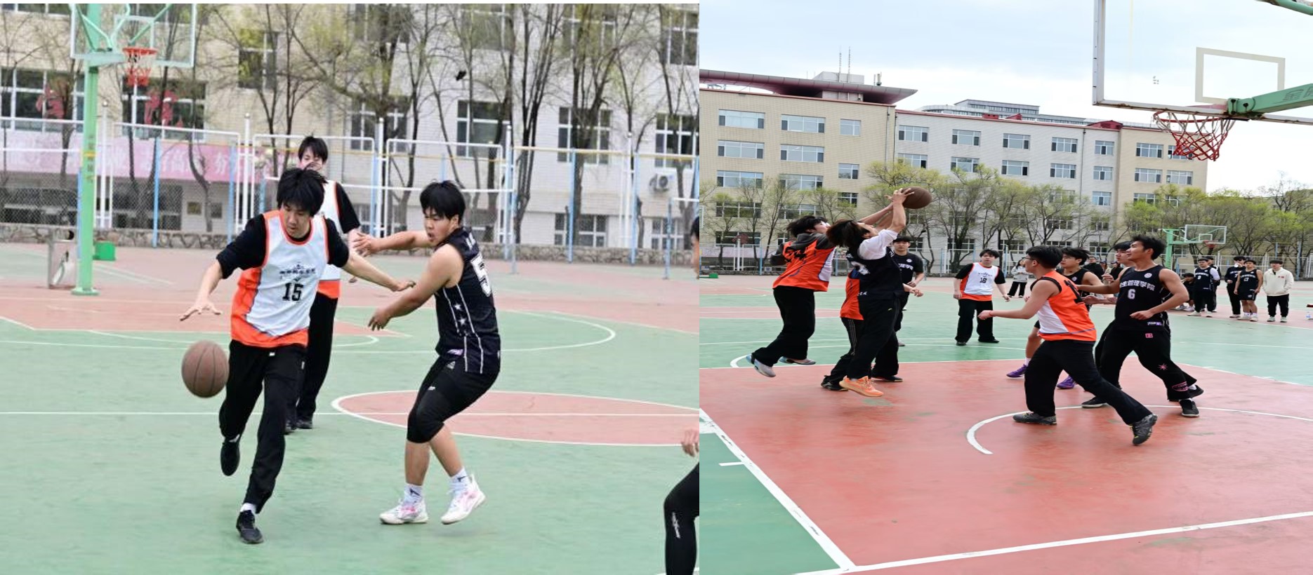 2025年5月13日,牡丹江医科大学的篮球场热闹非凡,生命科学学院与口腔医学院在此展开了一场扣人心弦的篮球友谊赛。这场比赛不仅是两院体育竞技的较量,更是增进彼此交流、促进团队协作精神的盛会,吸引了众多师生前来观战,现场加油声、呐喊声此起彼伏。