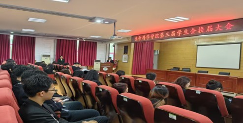 青春的接力棒在奋斗中传递,梦想的火炬在传承中点亮。为进一步加强学生干部队伍建设,提升学生自我管理、自我服务、自我教育能力,2025年6月13日晚17:30,牡丹江医科大学生命科学学院学生会第三届换届大会在图书馆“求是讲堂”隆重举行。学院团委负责人付小达老师、实习就业科负责人许晶老师、第二届学生会全体成员以及参与第三届学生会竞选者齐聚一堂,共同见证这一承载着光荣与使命的重要时刻。