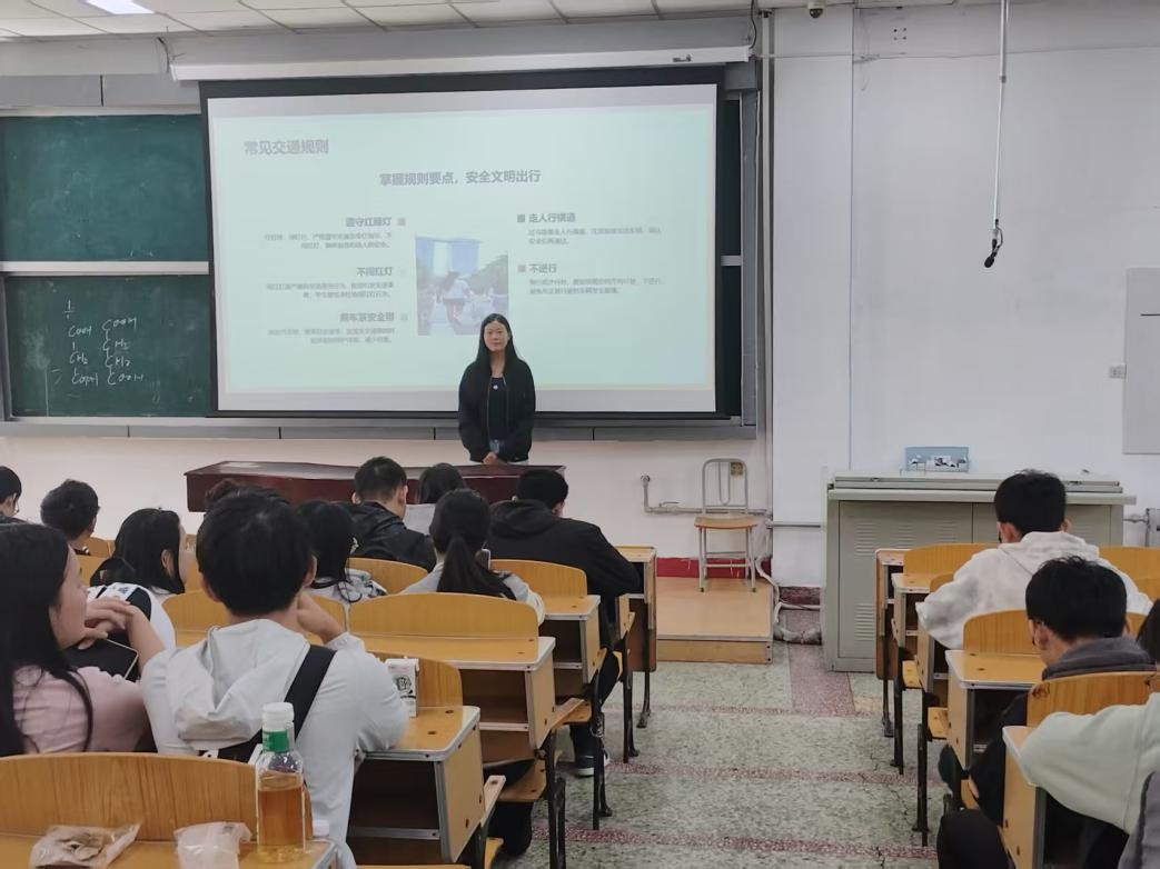 在交通安全教育方面,本学院聚焦学生出行安全,围绕“遵守交通规则、安全文明出行”主题开展活动。通过班会形式,向学生讲解交通信号灯、斑马线、非机动车骑行等基本规则,重点提醒学生过马路不玩手机、不逆行、不闯红灯,骑行共享电动车时务必佩戴安全头盔;集体活动时听从组织安排,不擅自离队,避免前往人流密集或存在安全隐患的场所。结合上下课通勤、周末外出等场景,叮嘱大家遵守交通规则,拒绝乘坐无资质“黑车”;部分班级还创新组织交通安全知识竞赛、短视频创作等活动,以学生喜闻乐见的方式强化交通安全意识,让“安全出行”理念深入人心。