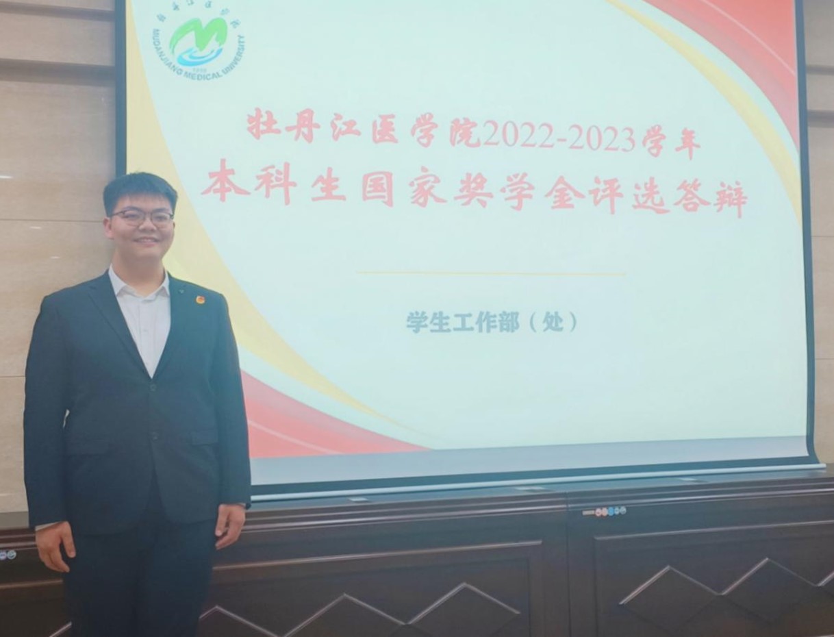 2023年10月12日,牡丹江医学院2022—2023学年本科生国家奖学金评选答辩在我校临床实训中心17楼会议室举行。生命科学学院2022级生物医学工程01班的施灵同学参加此次评选。我院虽然办学规模较小,学生人数较少,且在评分细则中需要参考智育成绩排名总人数,在这种情况下,施灵同学凭借自身实力以全校第二名的优异成绩突破重围,荣获我校2022—2023学年的国家奖学金。