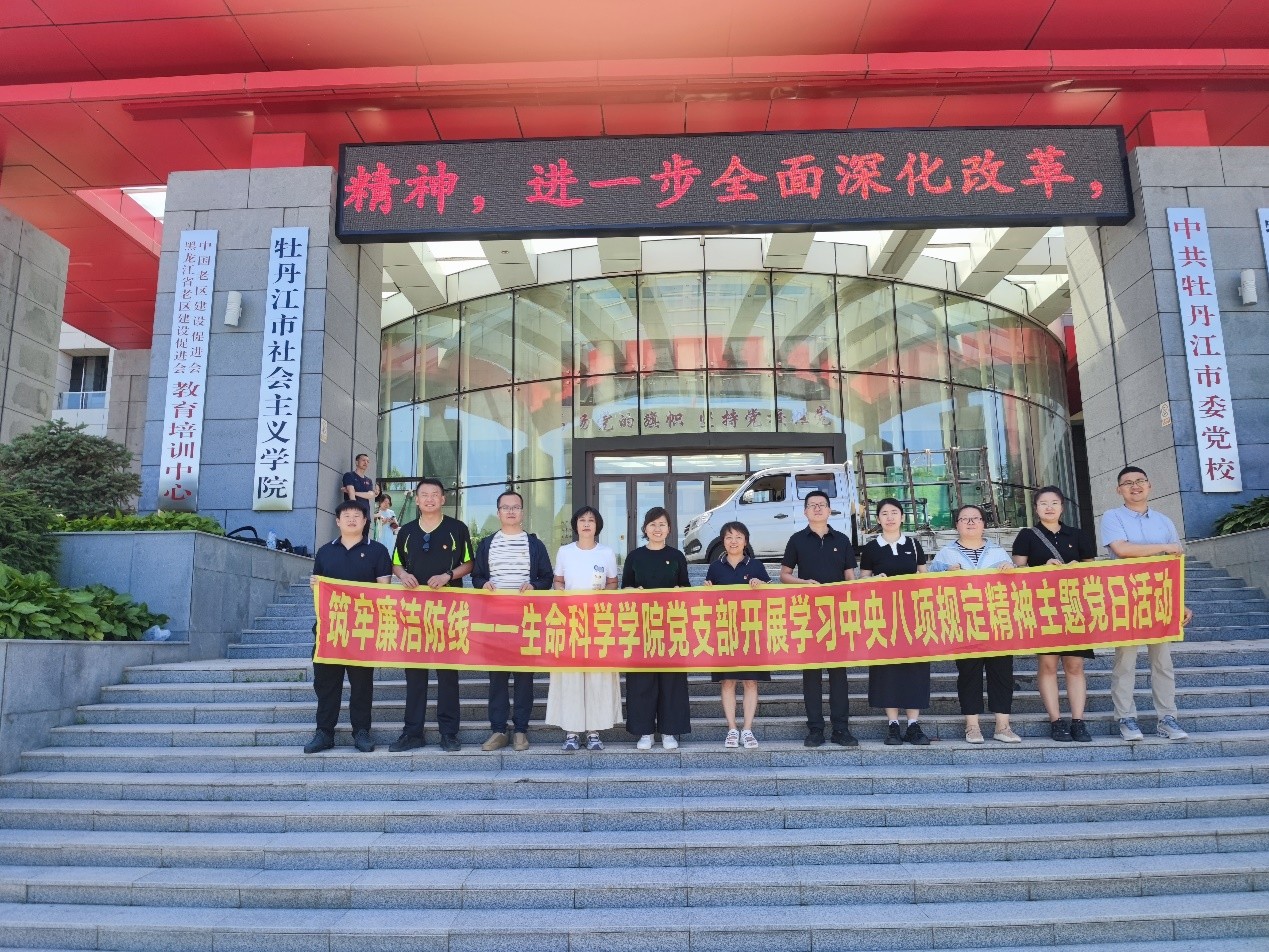 在中国共产党成立104周年之际,为推动深入贯彻中央八项规定精神学习教育走深走实,筑牢党员廉洁防线,2025年7月7日上午10点,生命科学学院党支部组织党员赴牡丹江市委党校参观牡丹江市廉政教育基地,开展由基础综合教学党委组织的主题为“筑牢廉洁防线”的学习中央八项规定精神主题党日活动。