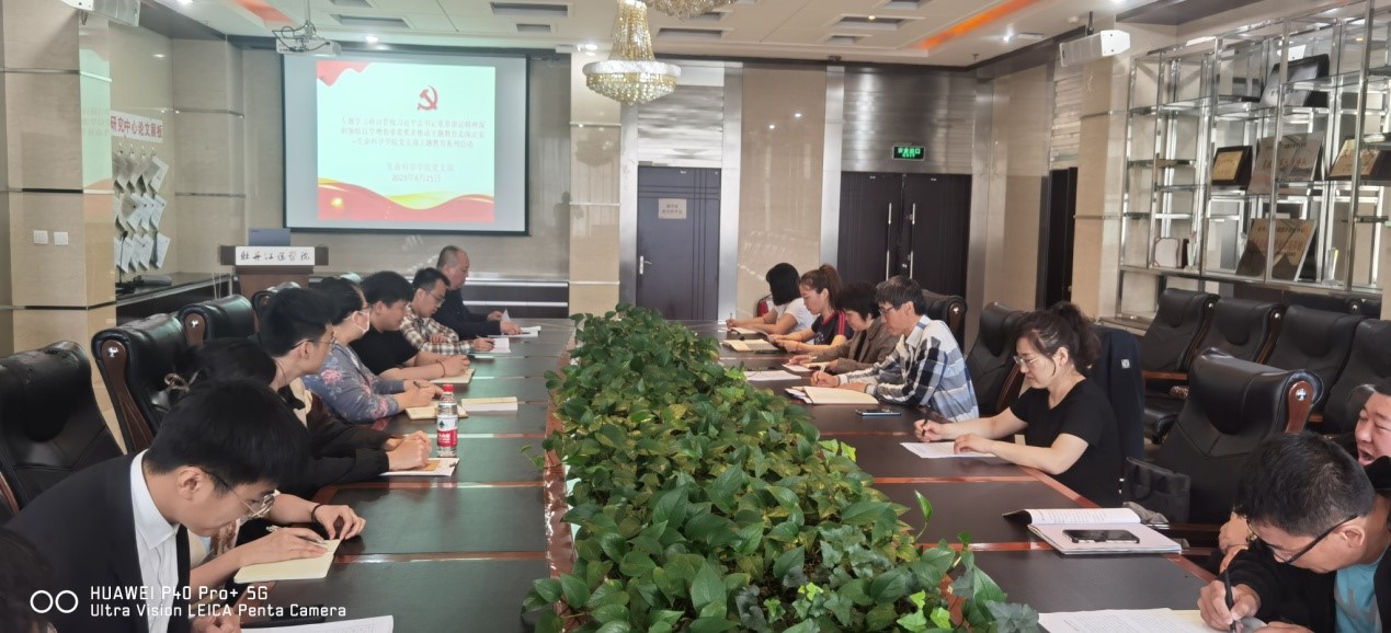 为扎实深入开展习近平新时代中国特色社会主义思想主题教育工作, 推动主题教育走深走实, 生命科学学院党支部于2023年6月21日上午9点,组织全体党员在医药研究中心六楼会议室专题学习研讨《贯彻习近平总书记重要讲话精神深刻领悟以学增智重要要求推动主题教育走深走实》,会议由党支部书记袁晓环同志主持。