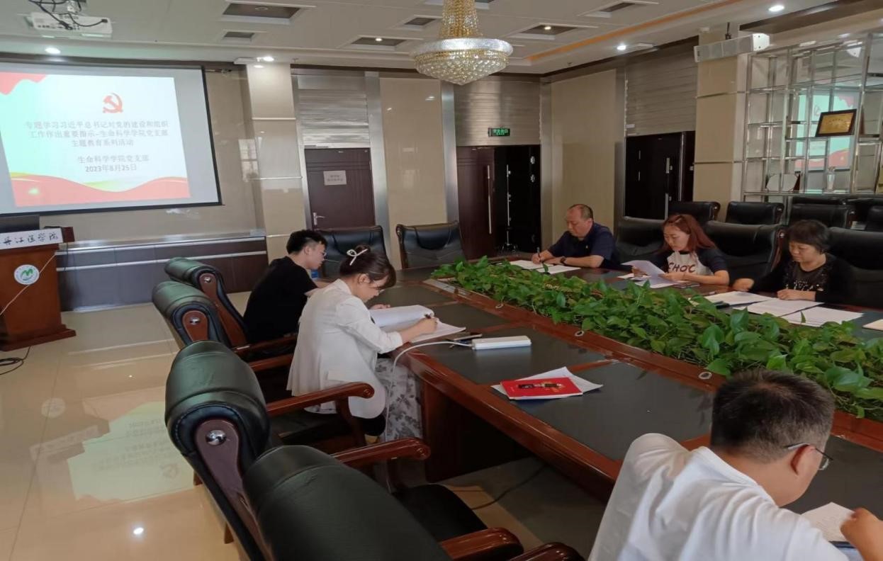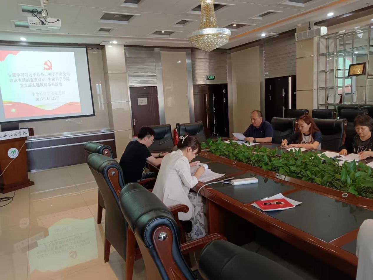 按照学校主题教育领导小组有关工作部署和要求,为了更好开好学习贯彻习近平新时代中国特色社会主义思想主题教育专题组织生活会, 生命科学学院党支部组织全体党员于2023年8月25日上午,在医药研究中心六楼会议室召开党员学习会议,会议由党支部书记袁晓环同志主持。