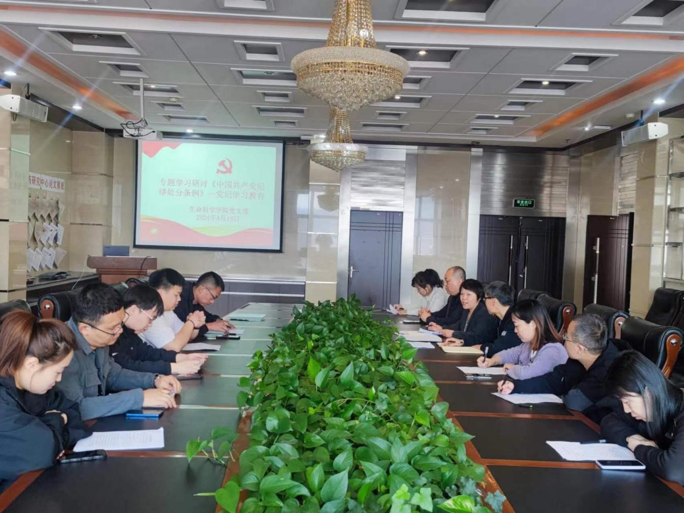 为扎实深入开展党纪学习教育工作 , 深入贯彻落实习近平总书记关于党纪学习教育的重要讲话和重要指示批示精神,生命科学学院党支部组织全体党员干部于2024年4月18日上午10点,在医药研究中心六楼会议室,专题学习研讨《中国共产党纪律处分条例》。学习研讨由学院党支部书记袁晓环同志主持。