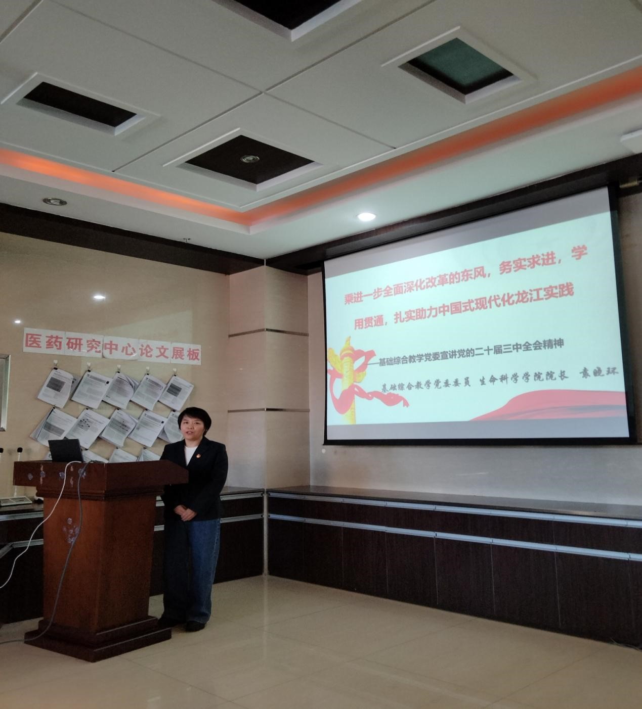 为深入学习贯彻党的二十届三中全会精神,生命科学学院党支部组织全体党员干部于2024年12月2日上午,在医药研究中心六楼会议室开展了学习贯彻党的二十届三中全会精神宣讲活动,宣讲会由生命科学学院党支部书记袁晓环同志主持并宣讲。
