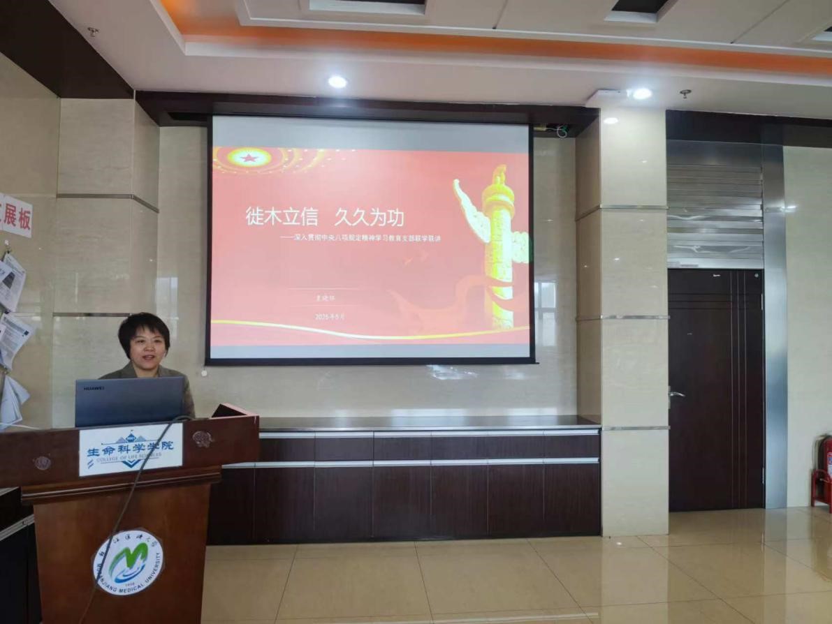 为做好深入贯彻中央八项规定学习教育,2025年5月7日上午9点30分,生命科学学院党支部书记袁晓环同志在医药研究中心六楼会议室以“徙木立信,久久为功 ”为题,为生命科学学院党支部的全体党员干部讲授了一堂生动精彩的深入贯彻中央八项规定精神专题党课。