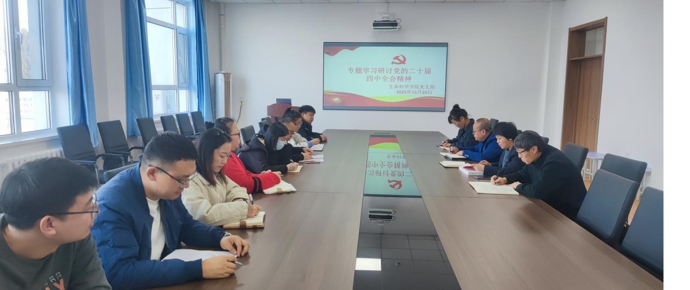 2025年10月20日至23日,中国共产党第二十届中央委员会第四次全体会议在北京举行。这是在“十四五”收官、“十五五”规划即将开启的关键节点召开的一次具有里程碑意义的重要会议。11月20日上午,在生命科学学院9楼会议室党支部全体党员专题研讨学习党的二十届四中全会精神,学习研讨由党支部书记袁晓环同志主持。