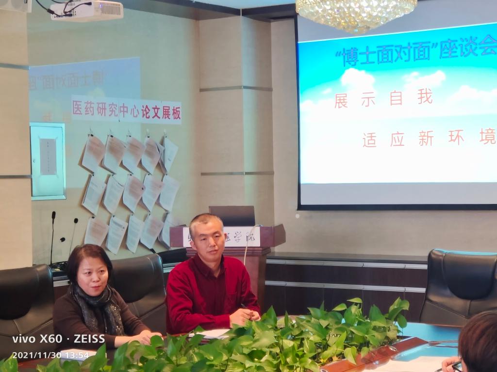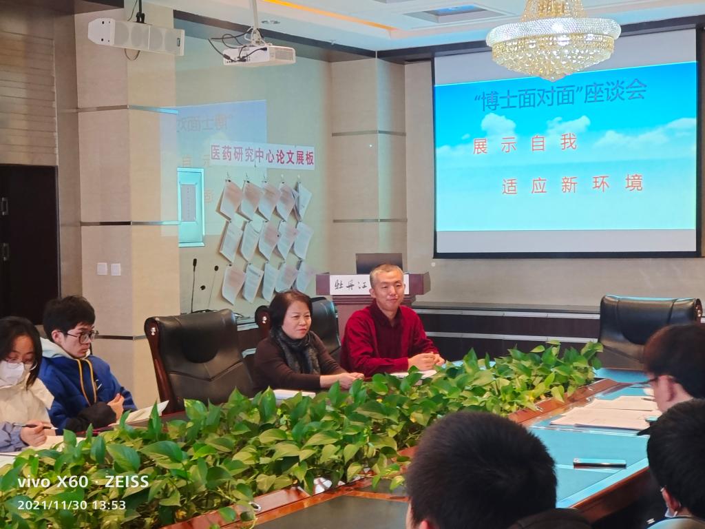 2021年11月30日生命科学学院“博士面对面”座谈会在医药研究中心会议室召开,生命科学学院导师袁晓环博士,郭永臣博士,武艳博士,21级生物医学工程系辅导员付小达老师及系全部同学参加了此次会议。
