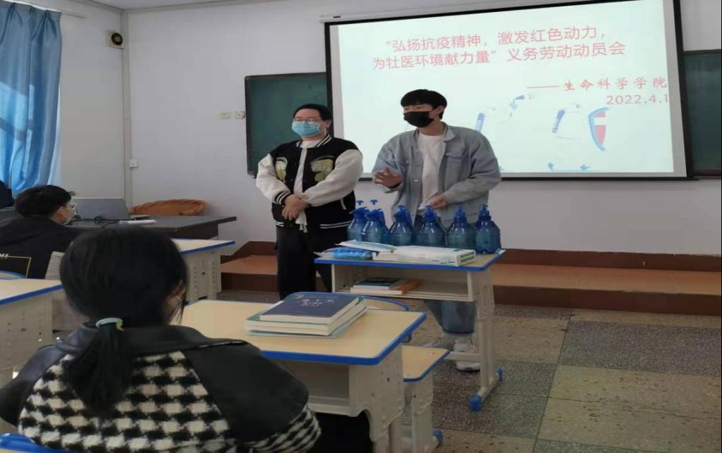 大考面前无闲着。在学校疫情防控关键期间,为保护学校优雅的环境,激发同学们的爱校情怀,强化“主人翁”意识,争做“四有”新时代大学生,生命科学学院主动请缨,于2022年4月1日,组织学生开展“弘扬抗疫精神,激发红色动力,为牡医环境献力量”主题义务劳动实践活动。