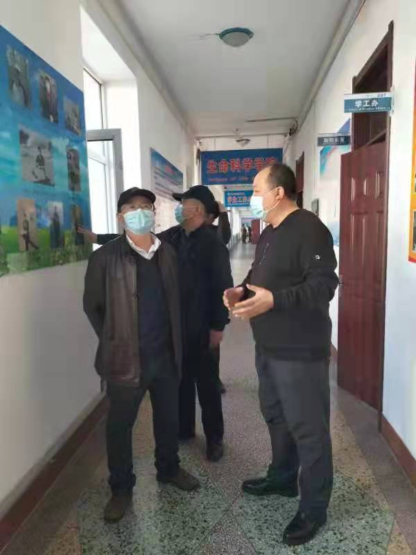 张书记先后走访了学工办、教室,与生命科学学院副院长李长荣、学工办副主任付小达亲切交谈,询问了封校管理期间学生的学习、心理、生活及防疫物资储备情况。嘱托在校教师一定要关心关爱学生,特别是要关注学生的心理动态,要经常深入宿舍了解学生的生活环境、宿舍卫生、通风消杀、心理健康、行为规范等情况,及时发现问题,及时反馈、及时处理。