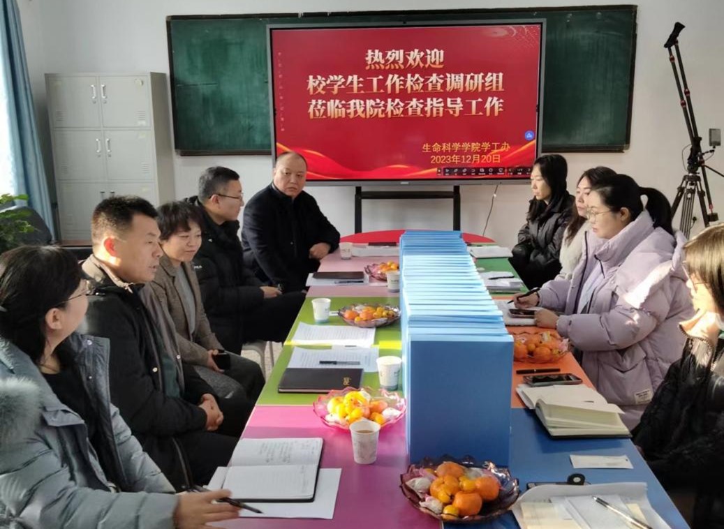 为进一步加强学生日常管理与服务,树立正确的学生工作导向,提升辅导员工作能力水平,夯实学生思想政治工作阵地,2023年12月20日上午,校学生处处长王俊林、副处长关会林、宁燕及调研组其他成员一行九人莅临生命科学学院,对我院2023年学生工作开展了检查和指导。