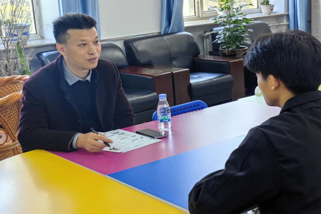 随后,吴红军总经理和HR刘琼丽在学生会活动室开始面试前来应聘实习的学生。同学们热情高涨,手持简历,积极展示了自己的专业技能和实践经验,吴红军总经理和HR刘琼丽详细认真地与同学们交流,并结合应聘同学的自身优势和岗位意向等逐一记录。