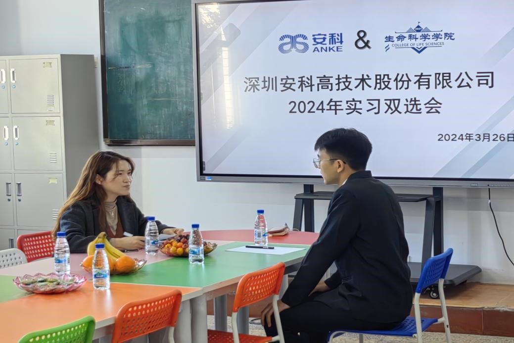 为进一步提高我院学生实习就业质量,形成实习就业紧密链接,为用人单位与学生搭建校企供需服务平台,实现求职招聘精准对接,推动校企之间的深度合作,共同推动生物医学工程专业领域的发展,3月26日下午,生命科学学院于我院学生会活动室及自习室成功举办了深圳安科高技术股份有限公司与2021级生物医学工程专业实习双选会。